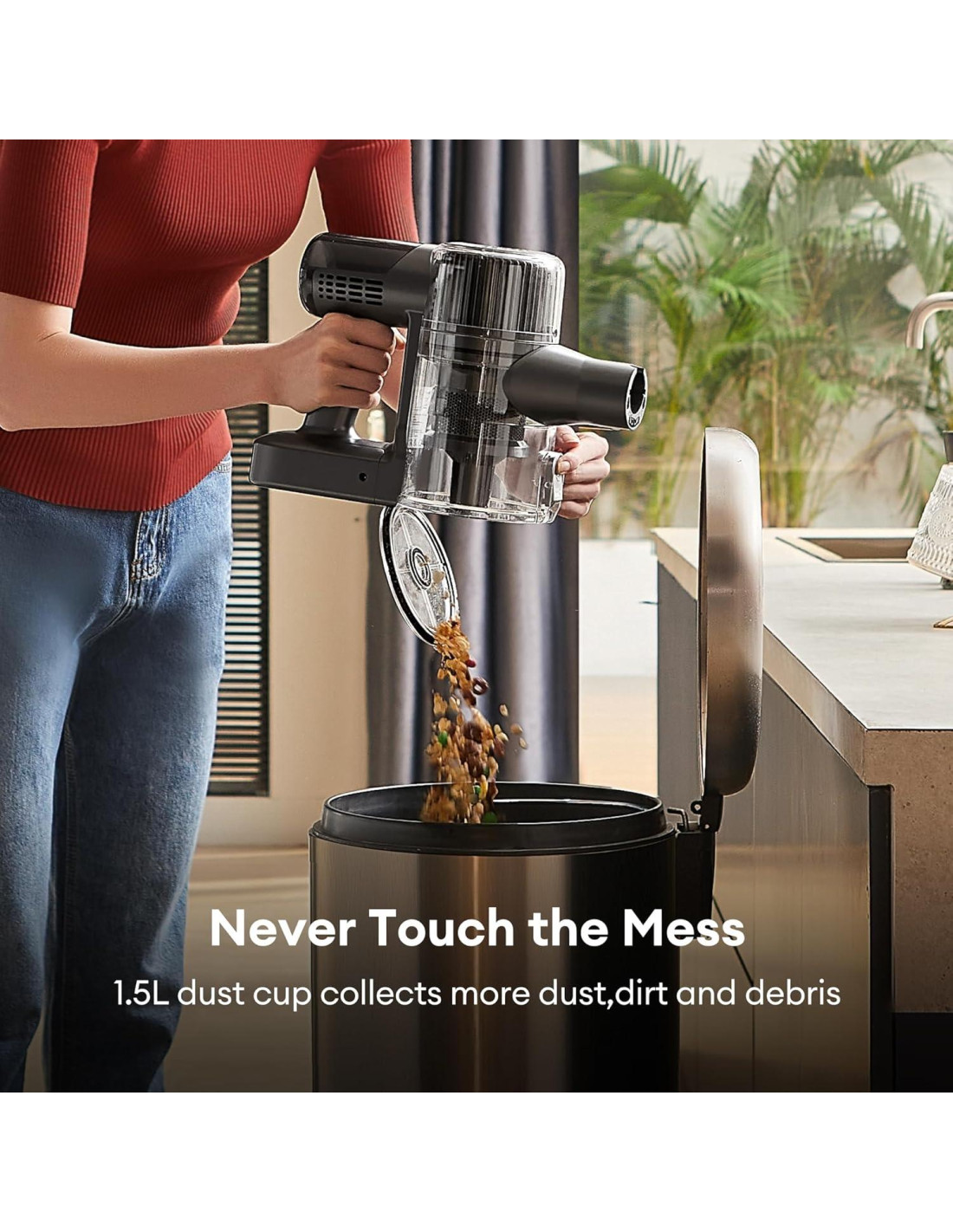 - Limpieza Exhaustiva sin Interrupciones: La potente aspiradora inalámbrica cuenta con una batería extraíble, por lo que puedes cargarla en cualquier lugar de tu hogar. Con una duración de batería de hasta 45 minutos con una sola carga (en modo ECO, medido en la aspiradora de mano), puede abordar toda tu casa sin interrupciones. El gran recipiente de polvo de 0.26gal (0,98 L) asegura que no tendrás que vaciarlo una y otra vez