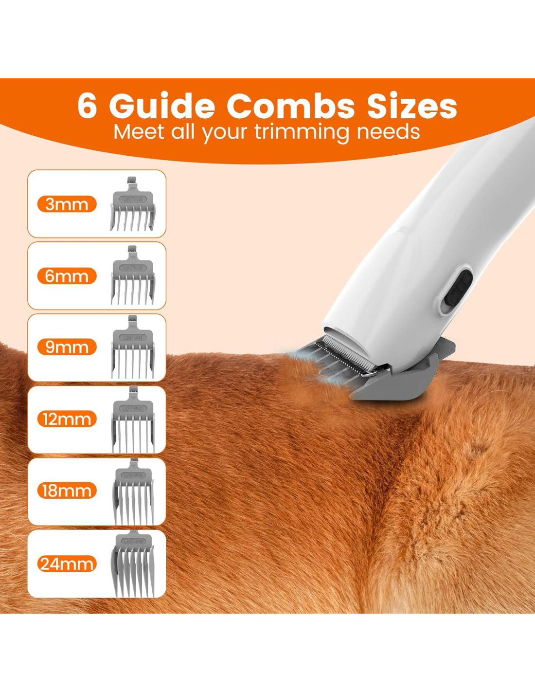 - Kit de Acicalamiento de Mascotas Todo en Uno: Kit de aspiradora para pelo de perro con 4 herramientas de acicalamiento para el cuidado de mascotas en un solo paso. Succión y acicalamiento todo en uno, cortadoras de perros y succión de pelo al mismo tiempo, eliminan efectivamente el pelo de mascotas y el polvo fino y lo mantienen ordenado. El cepillo deshedding para perros puede reducir la caída de pelo, prevenir enredos de pelo. Las cortadoras de perros vienen con 6 peines de recorte (3mm/6mm/9mm/12mm/18mm/24mm) que se pueden usar para comenzar a recortar diferentes áreas.
