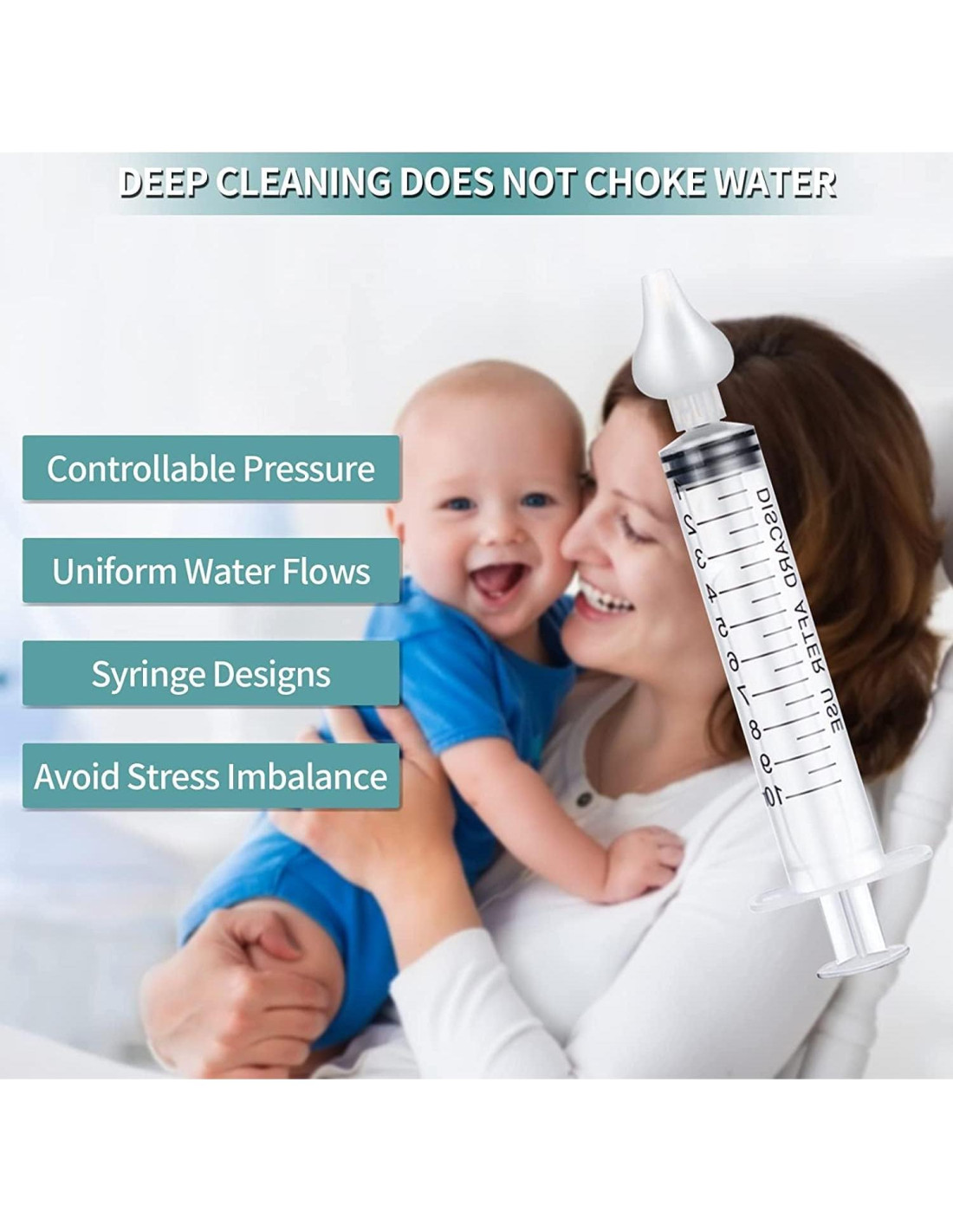 - Diseño perfecto: el mismo flujo de agua de la jeringa, sin atragantamientos, el agua fluye de manera regular y uniforme en la fosa nasal, este limpiador nasal para bebés puede limpiar suavemente la cavidad nasal de la pequeña nariz mientras asegura que su boquilla se ajuste a todas las narices pequeñas.