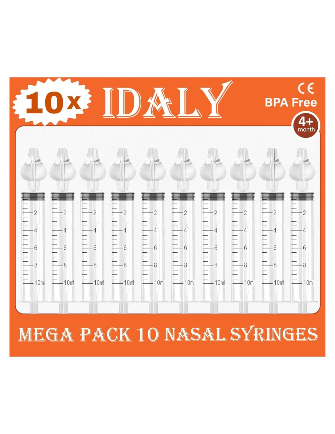 - 10 JERINGAS NASALES: Paquete de 10 jeringas nasales reutilizables. Cada jeringa tiene una capacidad de 10 ml. Hechas de materiales de alta calidad, libres de BPA y ftalatos. Seguras para usar con total confianza para la salud de su bebé.
