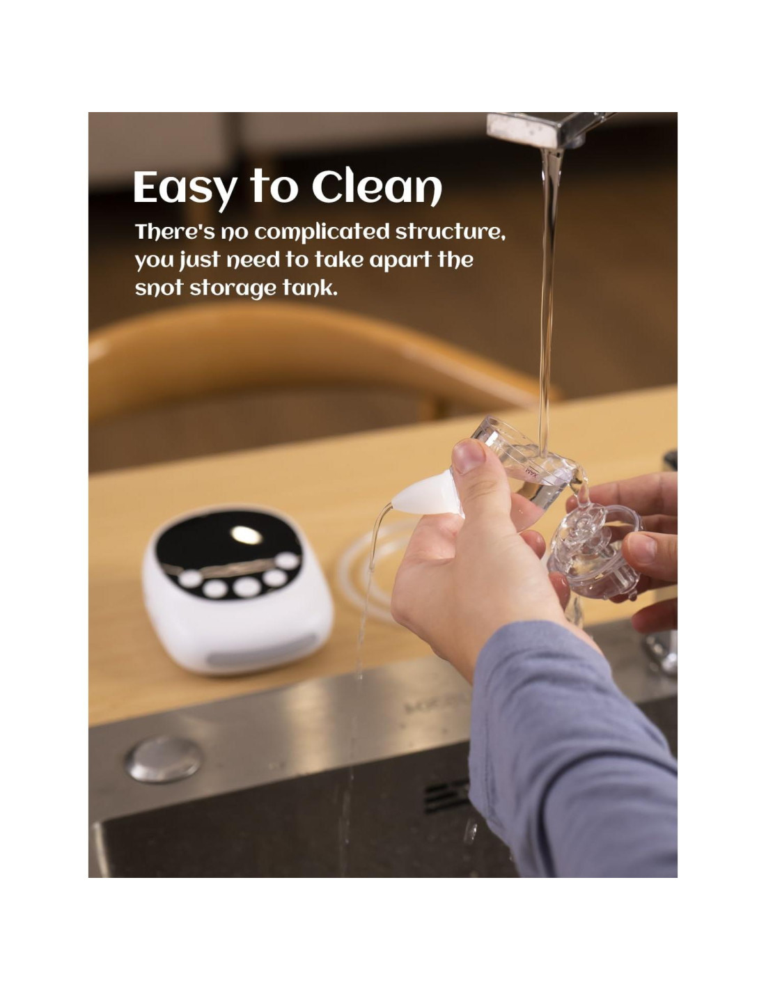 - [Sistema de Limpieza Higiénico y Sin Complicaciones] Diseñado para padres ocupados, el aspirador nasal tiene una cámara de moco transparente completamente desmontable y tubos que se pueden enjuagar o desinfectar rápidamente. Asegurando un fácil mantenimiento y una higiene a largo plazo. Para mayor comodidad, es apto para lavavajillas, asegurando una experiencia higiénica y sin estrés cada vez.