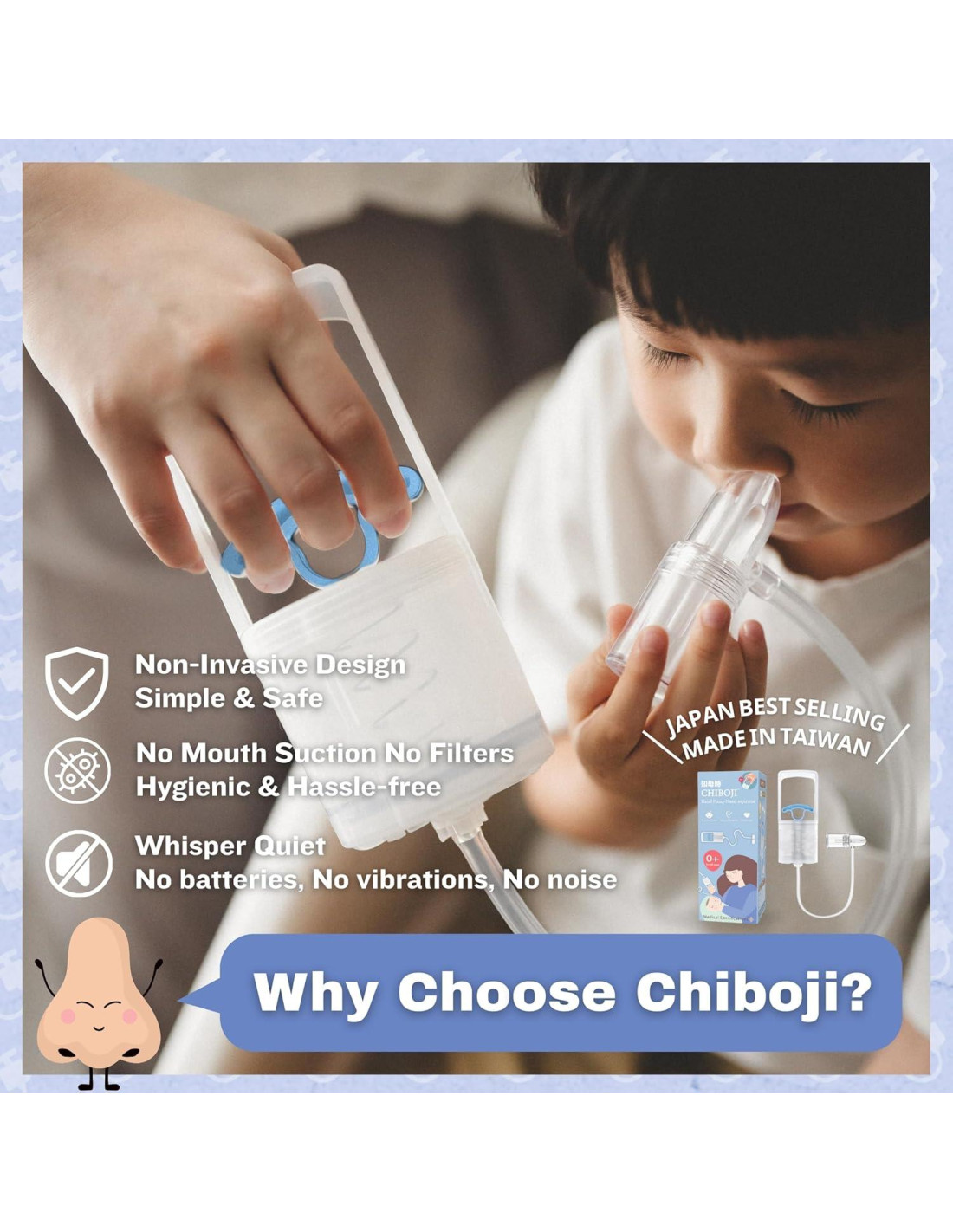 - Chiboji es el saca mocos para bebés original, fabricado con materiales premium y diseño patentado. Hecho en Taiwán para un rendimiento seguro y confiable; nunca una imitación de baja calidad.