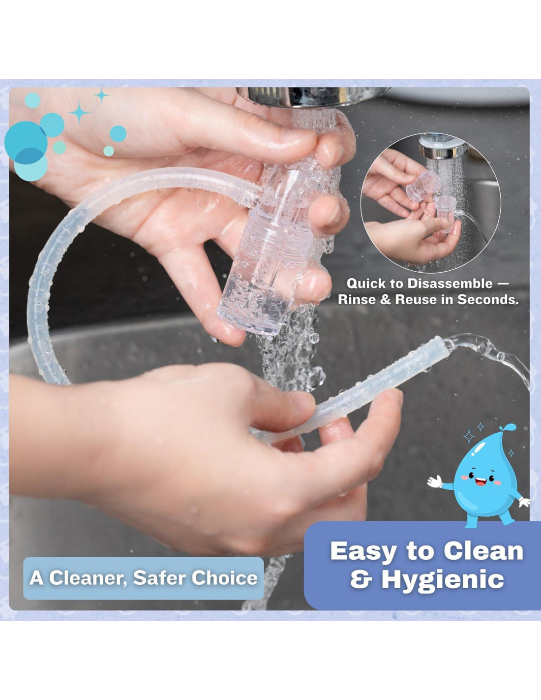 - Nuestro sistema de entrada de aire patentado mantiene los mocos fuera del tubo y la bomba, haciendo de este saca mocos para bebés una opción más limpia y sanitaria. Se desarma en segundos para un enjuague rápido y reutilización.