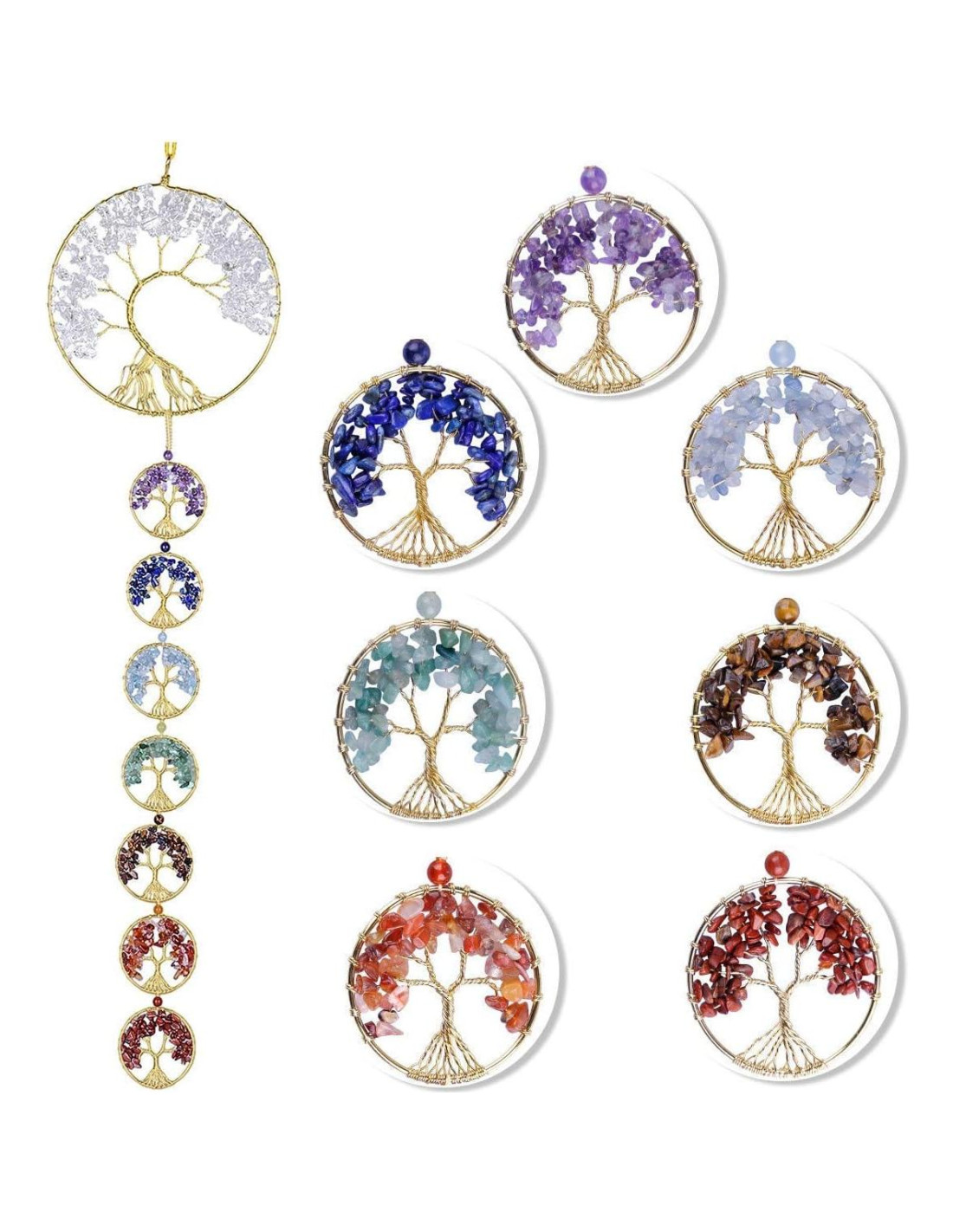 - Decoración Hecha a Mano: Hecho a mano de colgantes de piedras pulidas coloridas y árbol de la vida envuelto en alambre. Decoración ideal para luz de techo, candelabro, atrapa luz solar, exhibición de boda, souvenir de boda, colgantes para coche, lámpara, ventana, etc.