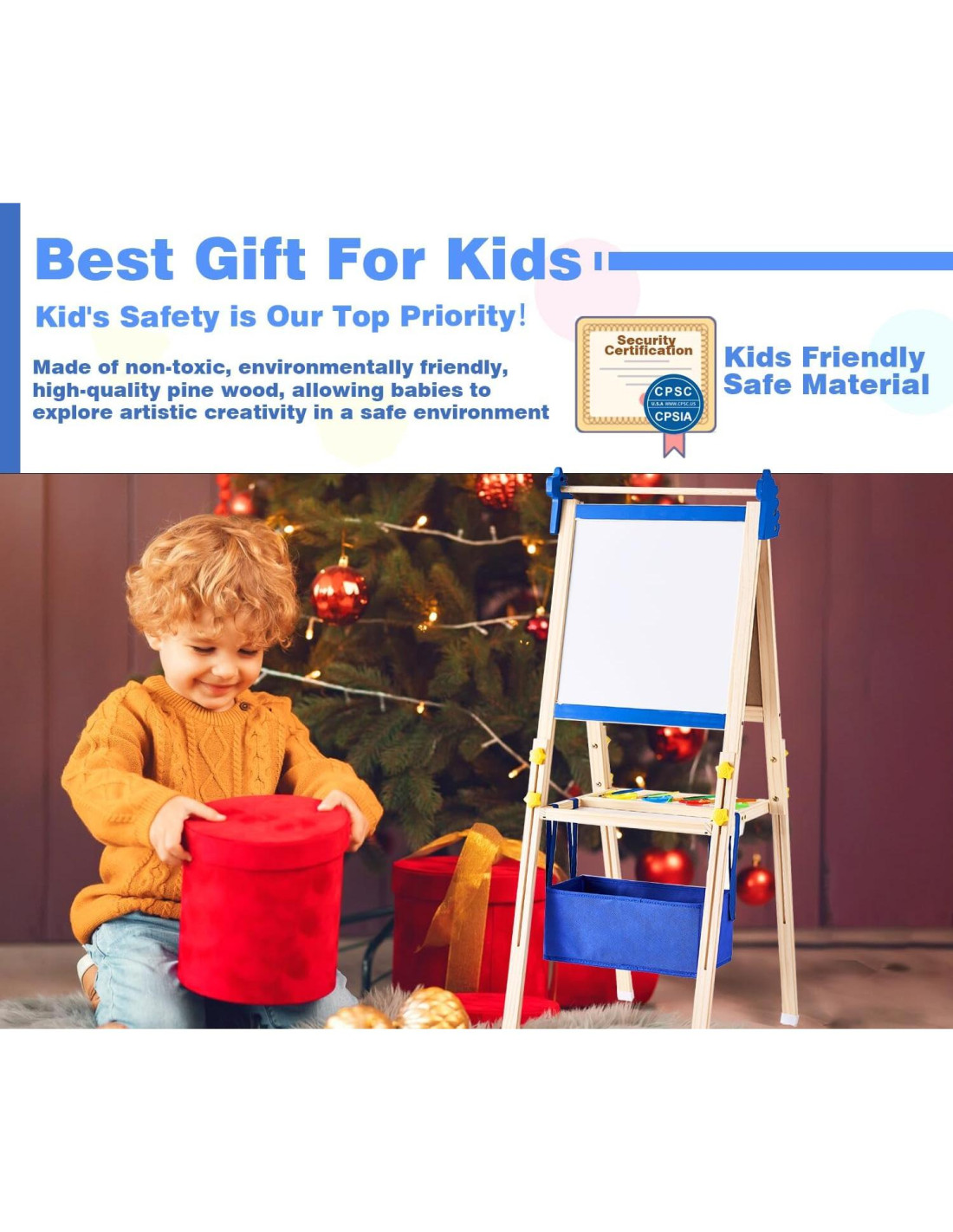 - Materiales seguros y ecológicos El caballete para niños está hecho completamente de madera de pino natural de alta densidad, importada directamente de Nueva Zelanda. Cada caballete de arte para niños cumple con los estándares de calidad, habiendo sido cuidadosamente lijado y pulido para asegurar una superficie más suave y duradera.