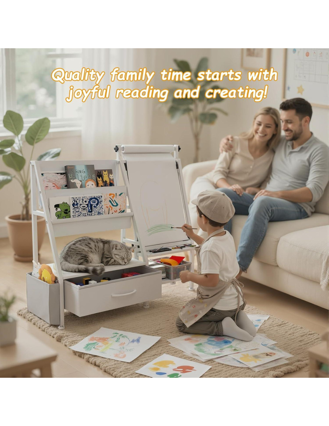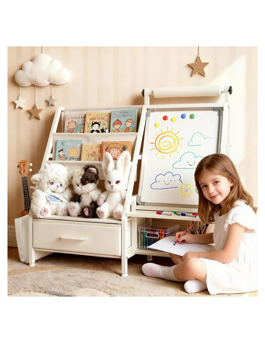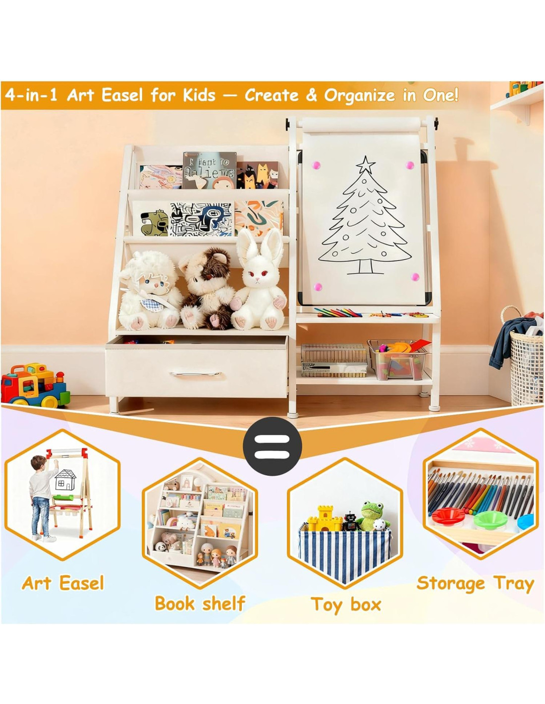 - [Caballetes de arte 4-en-1 para niños] Este caballete de dibujo para niños pequeños de 1-3 combina creatividad y organización en uno. Es un caballete de pintura para niños que se puede usar para dibujar, pintar y aprender. También sirve como estantería y organizador de juguetes, manteniendo los suministros de arte, libros de cuentos y juguetes ordenados-ideal para caballetes de niños pequeños de 2-4 años o niños mayores.
