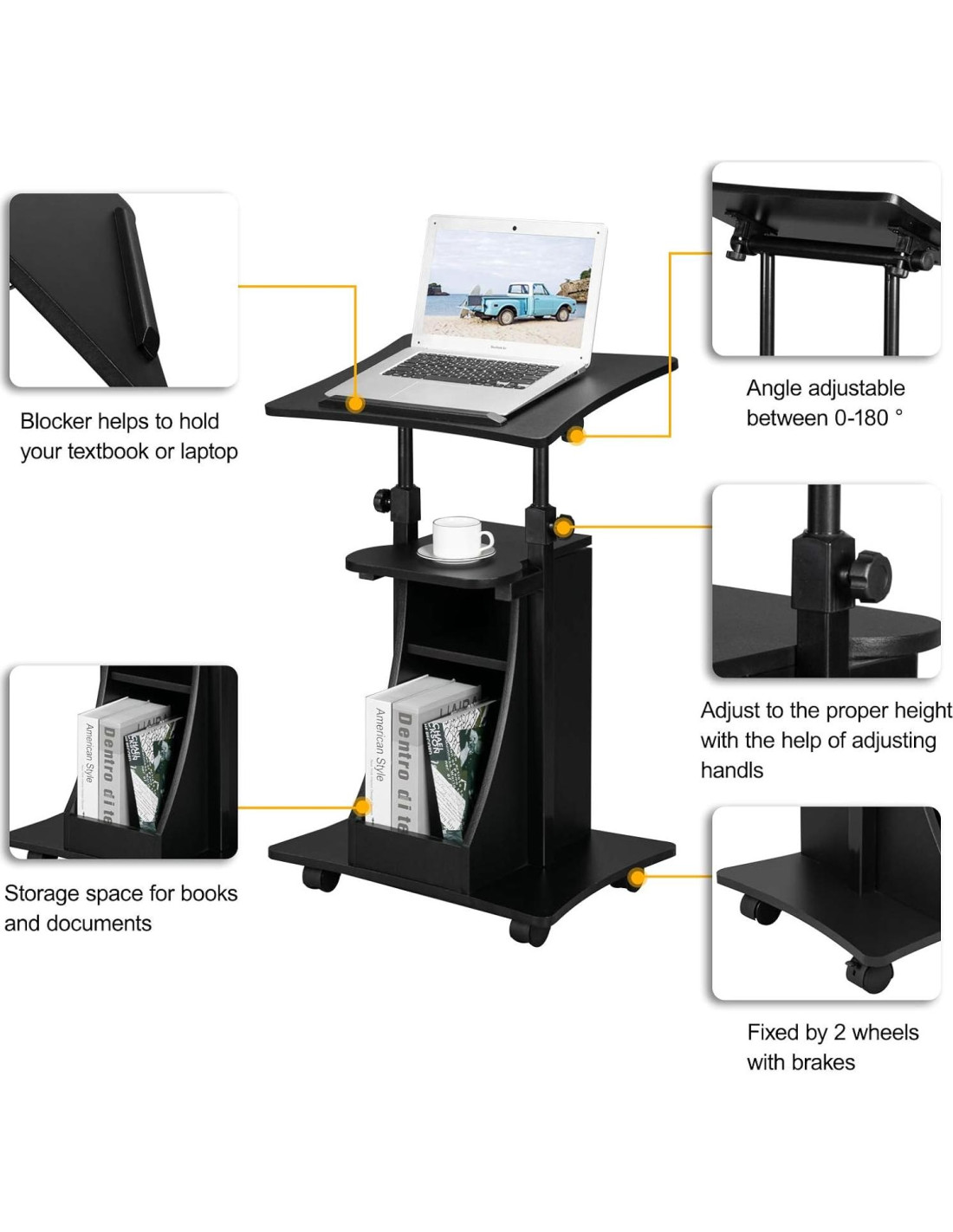 - MATERIALES DE ALTA CALIDAD: Hecho de un marco de hierro resistente y tablero de MDF, de calidad extremadamente alta y gran durabilidad. También hay un bloqueador en la superficie de la mesa para sostener libros, borradores de discursos, laptops, etc.