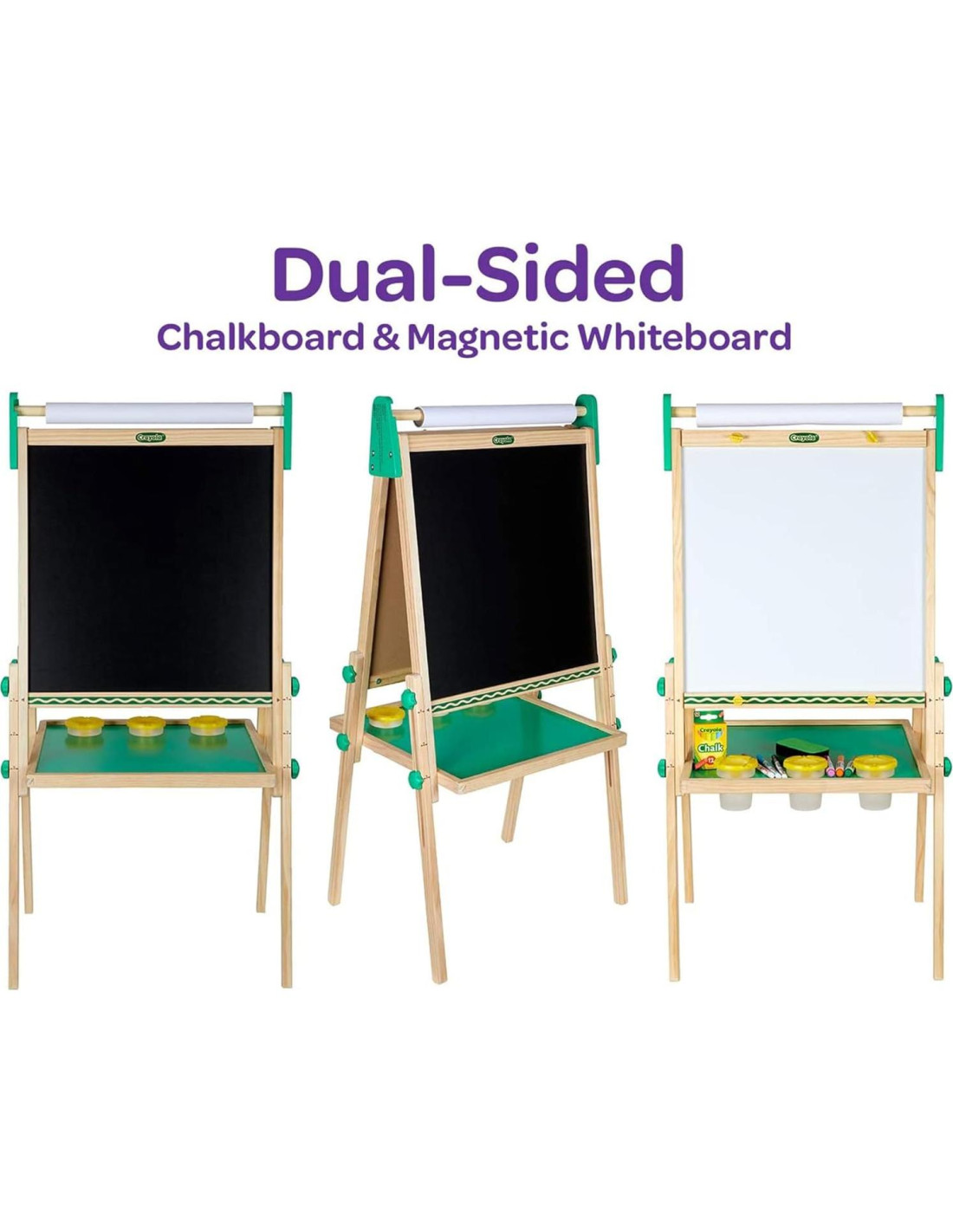 El Caballete de Madera Crayola para Niños es la herramienta de arte perfecta para ayudar a su hijo a crear y exhibir sus coloridos dibujos, pinturas y otras obras de arte. Este caballete para niños de doble cara cuenta con una pizarra blanca de borrado en seco en un lado y una superficie de pizarra de tiza en el otro, lo que le da a su hijo la libertad de cambiar sus actividades como desee. Este caballete de arte para niños pequeños también cuenta con una conveniente bandeja de arte ubicada debajo de la superficie de escritura, así como un dispensador de papel incorporado ubicado en la parte superior. Además, es ajustable en altura de 94 a 107 centímetros, permitiendo que el caballete crezca a medida que los niños lo hacen. A los niños les encanta la versatilidad del Caballete de Madera Crayola, y es un gran regalo para cumpleaños y festividades. Seguro y no tóxico, es ideal para edades de 3 años en adelante.