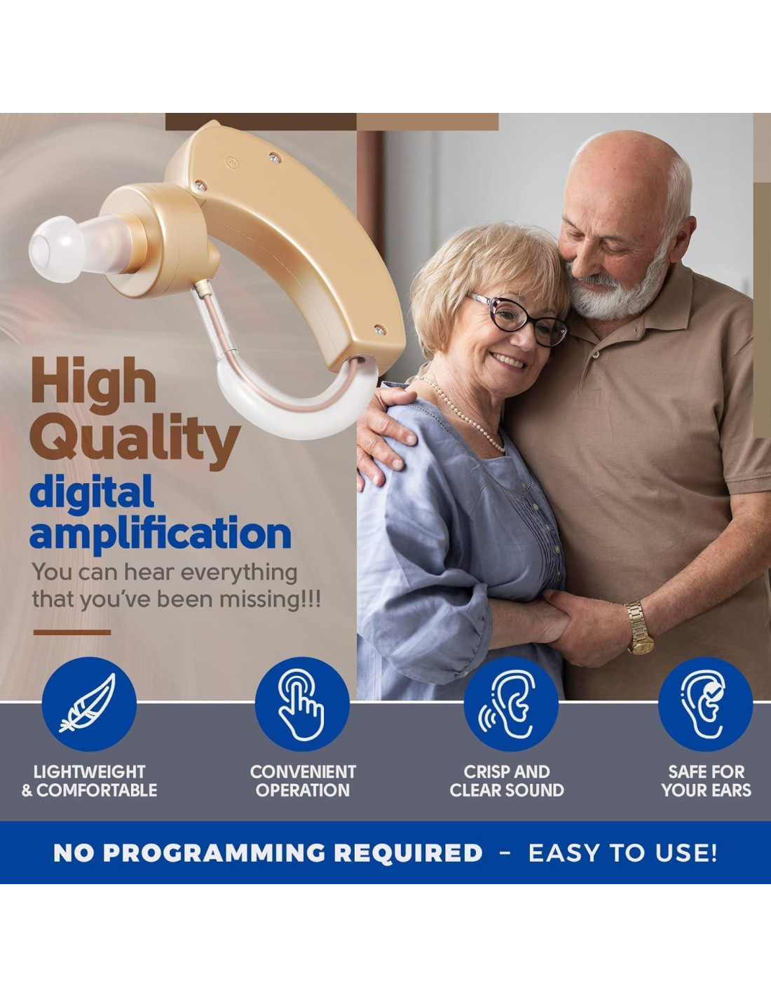 - CONTROL SIN ESFUERZO - Navega a través de tu mundo auditivo con facilidad. Nuestro audífono fácil de usar, diseñado específicamente para personas mayores, ofrece seis configuraciones de volumen ajustables, permitiéndote afinar tu experiencia auditiva con precisión. Cada configuración es una puerta a conversaciones más claras y paisajes sonoros más ricos, haciendo que los momentos de la vida sean inolvidables
