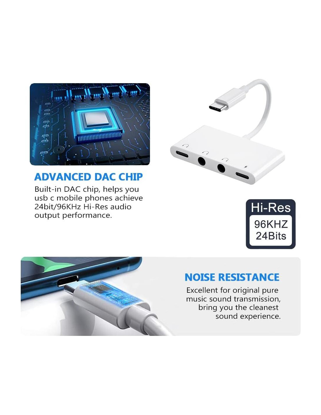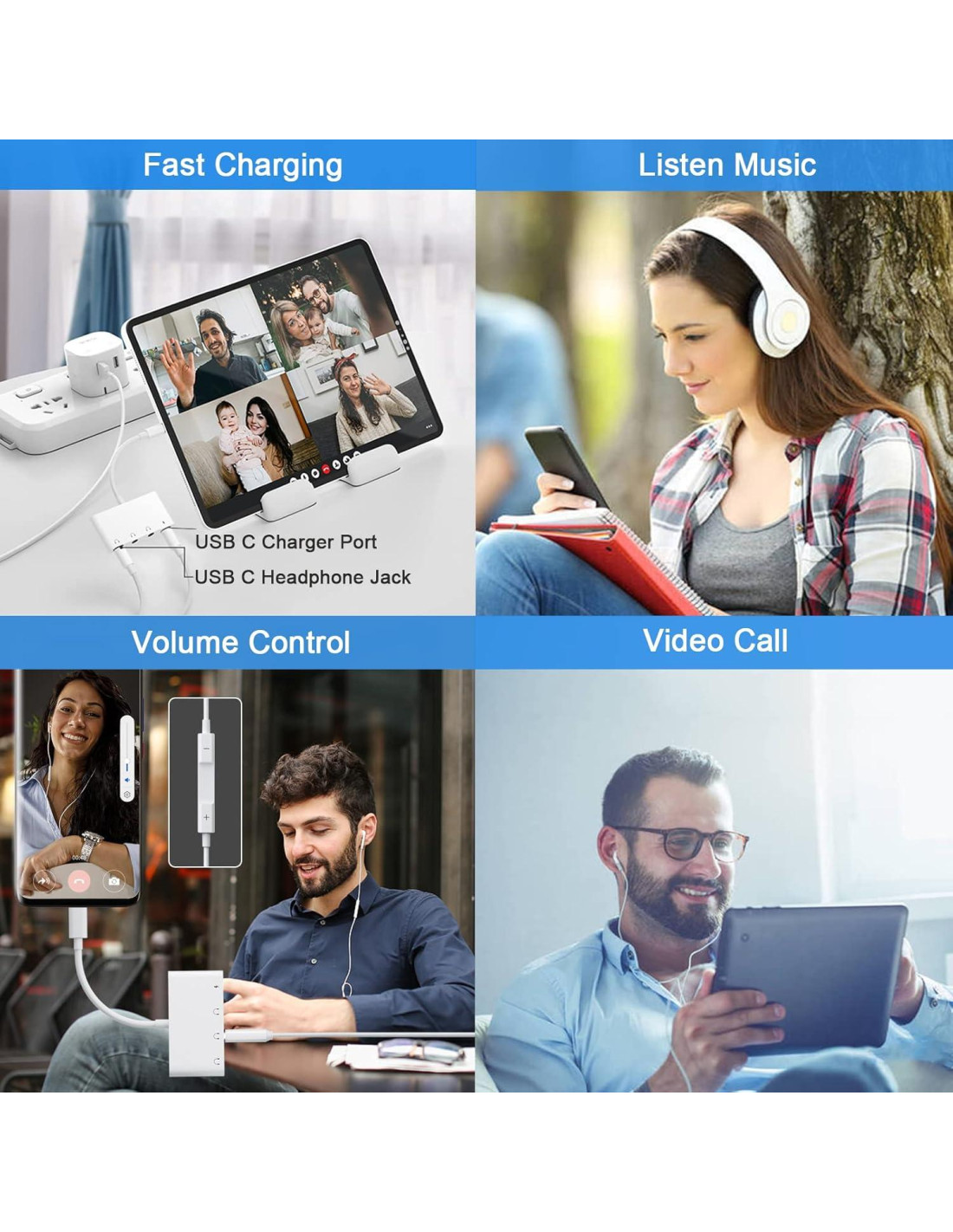 - Este adaptador de USB C a 3.5mm tiene dos conectores de auriculares de 3.5mm, un conector de auriculares USB C y un puerto de carga rápida USB C que te permite escuchar música, ver videos, usar navegación de audio, control de música o llamar mientras cargas.