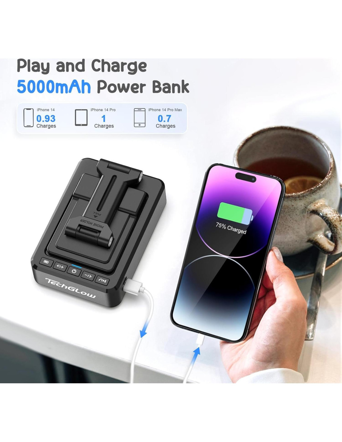 - [Banco de Energía] Carga tu smartphone o tablet mientras ves videos o escuchas música con este altavoz bluetooth banco de energía de 5000mAh. No necesitas preocuparte por que la batería de tu teléfono se agote en medio de la diversión. También es portátil y fácil de llevar.