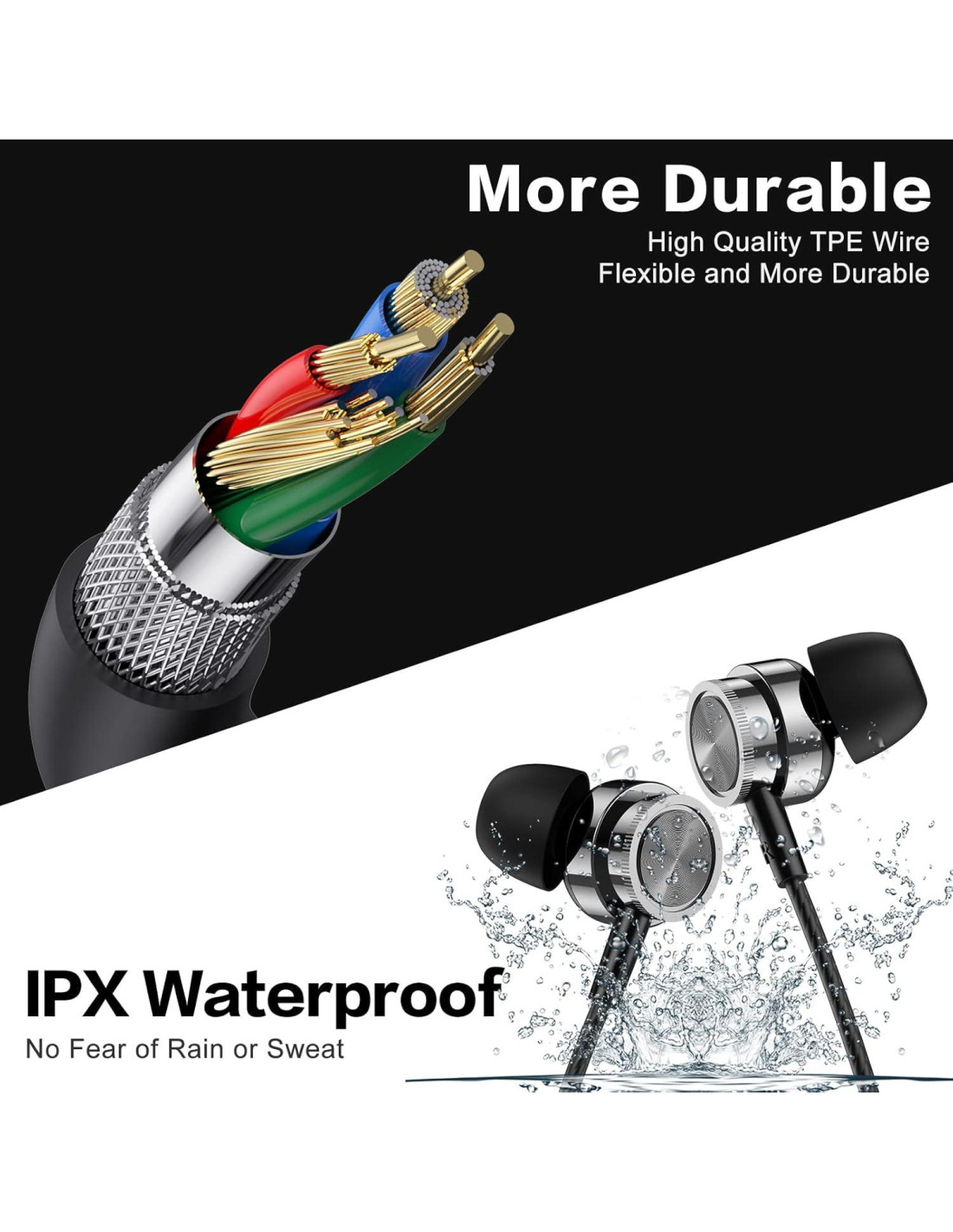 - Micrófono Incorporado y Control de Volumen: Los auriculares con cable con micrófono incorporado y control remoto te permiten responder/terminar llamadas, reproducir/pausar canciones, saltar a la siguiente/canción anterior, ajustar el volumen sin tener que sacar tu teléfono mientras haces ejercicio, conduces, andas en bicicleta o viajas.