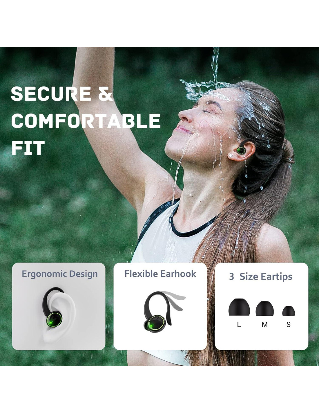 - Diseño de Ajuste y Comodidad, Impermeable IP7: Los auriculares bluetooth C16 son buenos auriculares para correr en el gimnasio porque se mantienen firmemente en su lugar, diseñados para ajustarse completamente a tus oídos sin caerse incluso durante los entrenamientos.