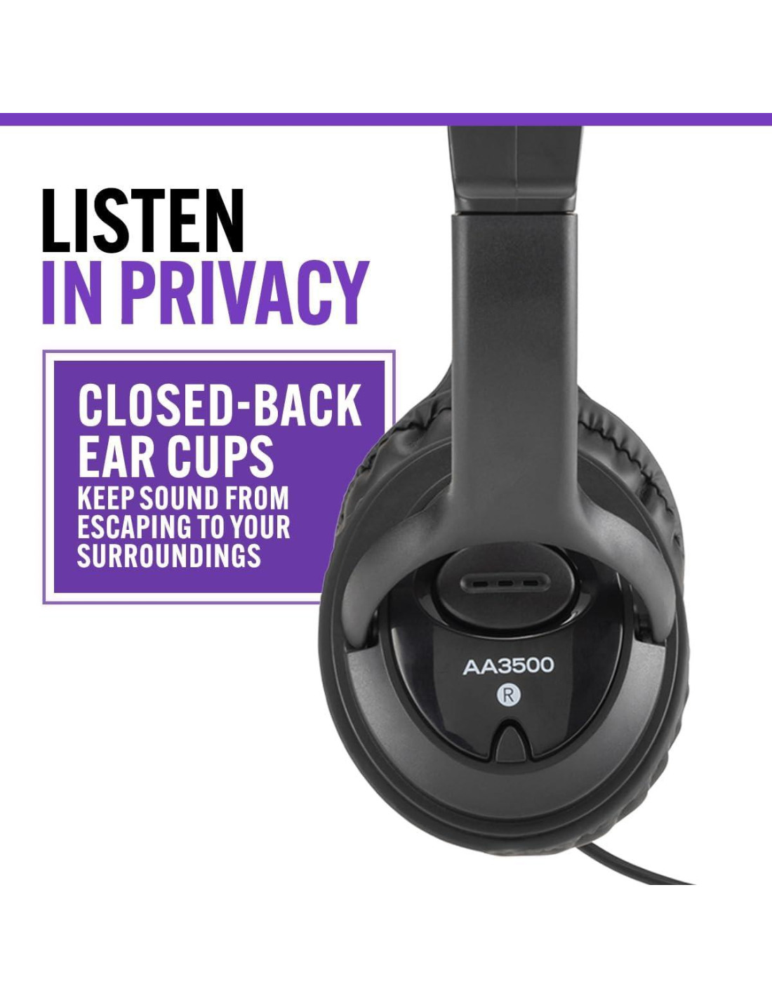- Escucha en Privacidad. Las copas de oído cerradas no permiten que tanto sonido escape a tu entorno como las copas de oído abiertas, lo que las hace ideales para usar en bibliotecas, aulas y otras situaciones silenciosas.