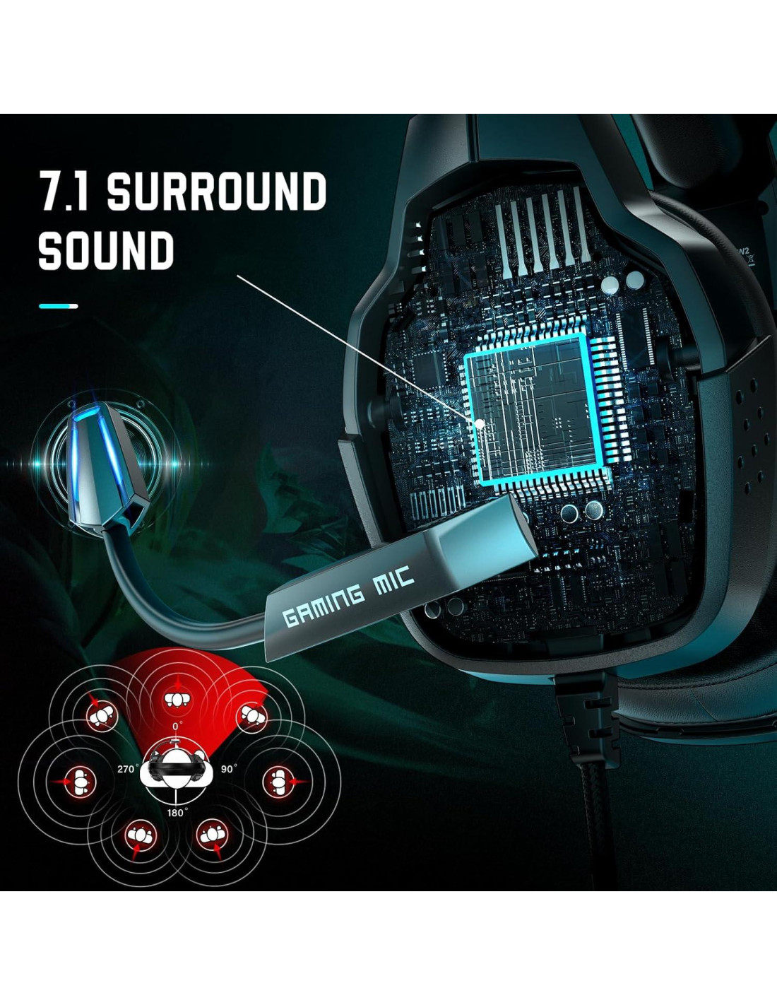 - Experiencia de Juego Inmersiva Este auricular gaming cuenta con excelente aislamiento de ruido ambiental y un controlador de 50mm de alta precisión combinado con sonido surround virtual 7.1, brindándote un sonido claro y sorprendente, ayudándote a posicionar con precisión a los enemigos.