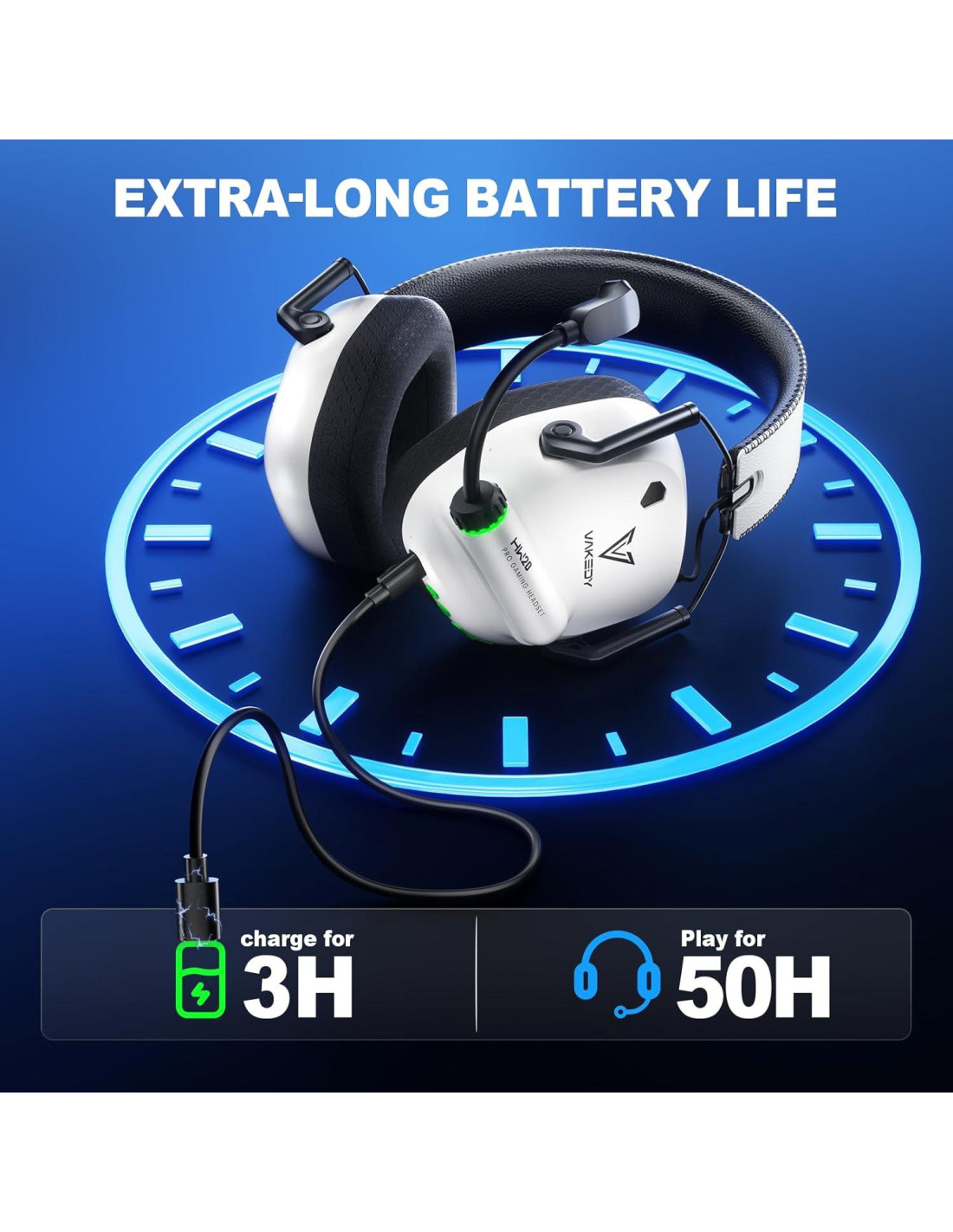 - Batería de 50H y Carga Rápida de 3H Auriculares gaming para PC cuentan con una impresionante duración de 50 horas de juego continuo con una alerta de voz para baja energía, y cargar completamente los auriculares sobre la oreja solo toma 3 horas. Duran de 3 a 5 días con uso ligero, 1 a 2 días con uso intensivo.
