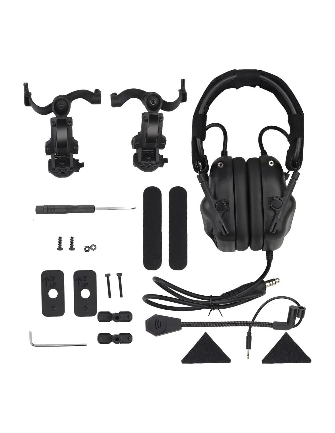 - ¿Qué productos recibirás? 1* Auricular Táctico, 2* Adaptador de Riel ARC Multifuncional con accesorios de instalación, 1* Auricular tipo U94 PTT