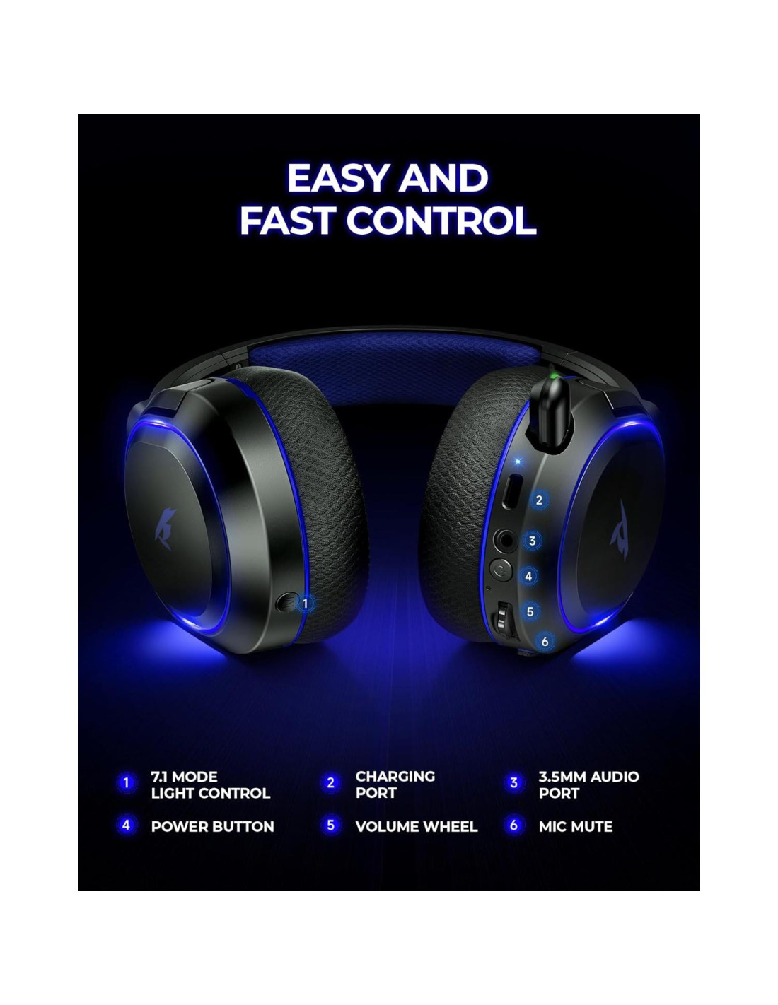 - [Sonido Surround 7.1 y Luz Decorativa Estética] El auricular gaming UG-08S para PC puede proporcionarte una experiencia de sonido surround estéreo 3D de cine, diseñado específicamente para jugadores y audiófilos y compatibilidad multiplataforma. Mantén presionada la tecla 'M' para activar el sonido surround 7.1 y el controlador dinámico reproduce graves profundos y agudos claros. Lo que te permite escuchar cada detalle en el juego con claridad de pin-drop desde hasta 12 metros de distancia. Como las voces de los compañeros de equipo, pasos, dirección, y más. Haz doble clic en la tecla M para activar la luz ambiental, luego haz clic una vez en la tecla M para alternar entre dos modos: luz constante y degradado. El auricular gaming inalámbrico Valorise traerá una atmósfera de juego más fresca.