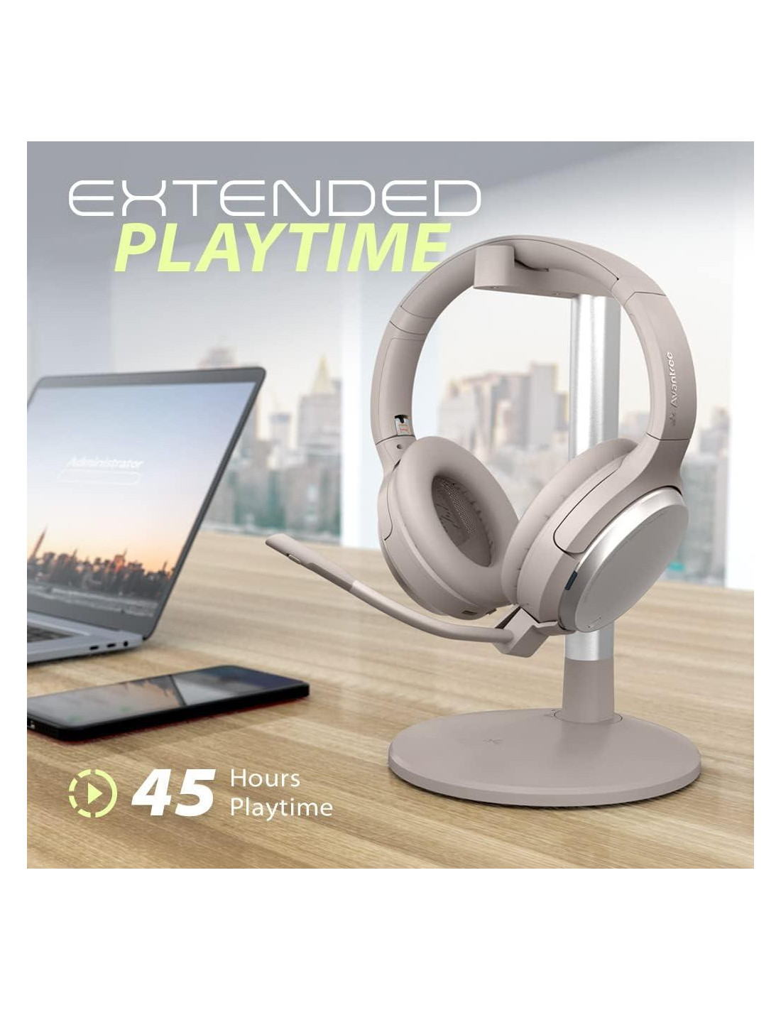 - [TIEMPO DE REPRODUCCIÓN EXTENDIDO] Una duración de batería de hasta 45 horas te proporciona entretenimiento ininterrumpido durante días. Cuando la batería está baja, simplemente coloca los auriculares en el soporte de carga proporcionado y estará listo para usar nuevamente en unas pocas horas.