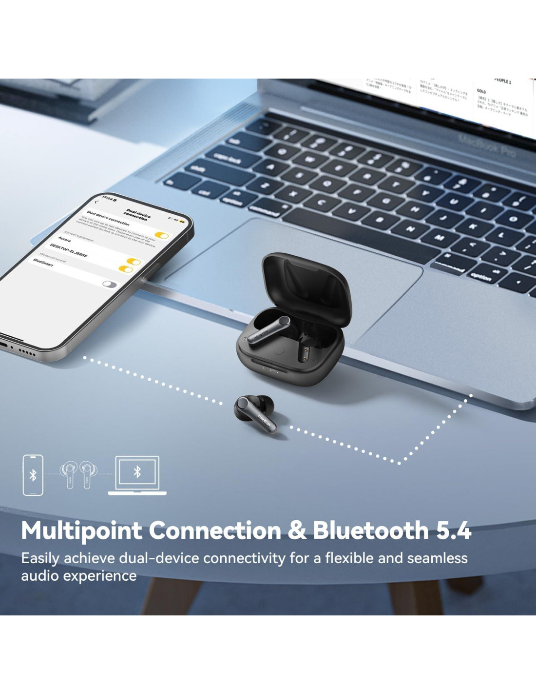 - Conexión Multipunto y Bluetooth 5.4. Combinados con Bluetooth 5.4 y Conexión Multipunto, los auriculares Bluetooth pueden conectarse con dos dispositivos Bluetooth simultáneamente, ofreciendo un consumo de energía ultra bajo y la conexión más segura. Usa la función Google Fast Pair integrada con dispositivos Android.