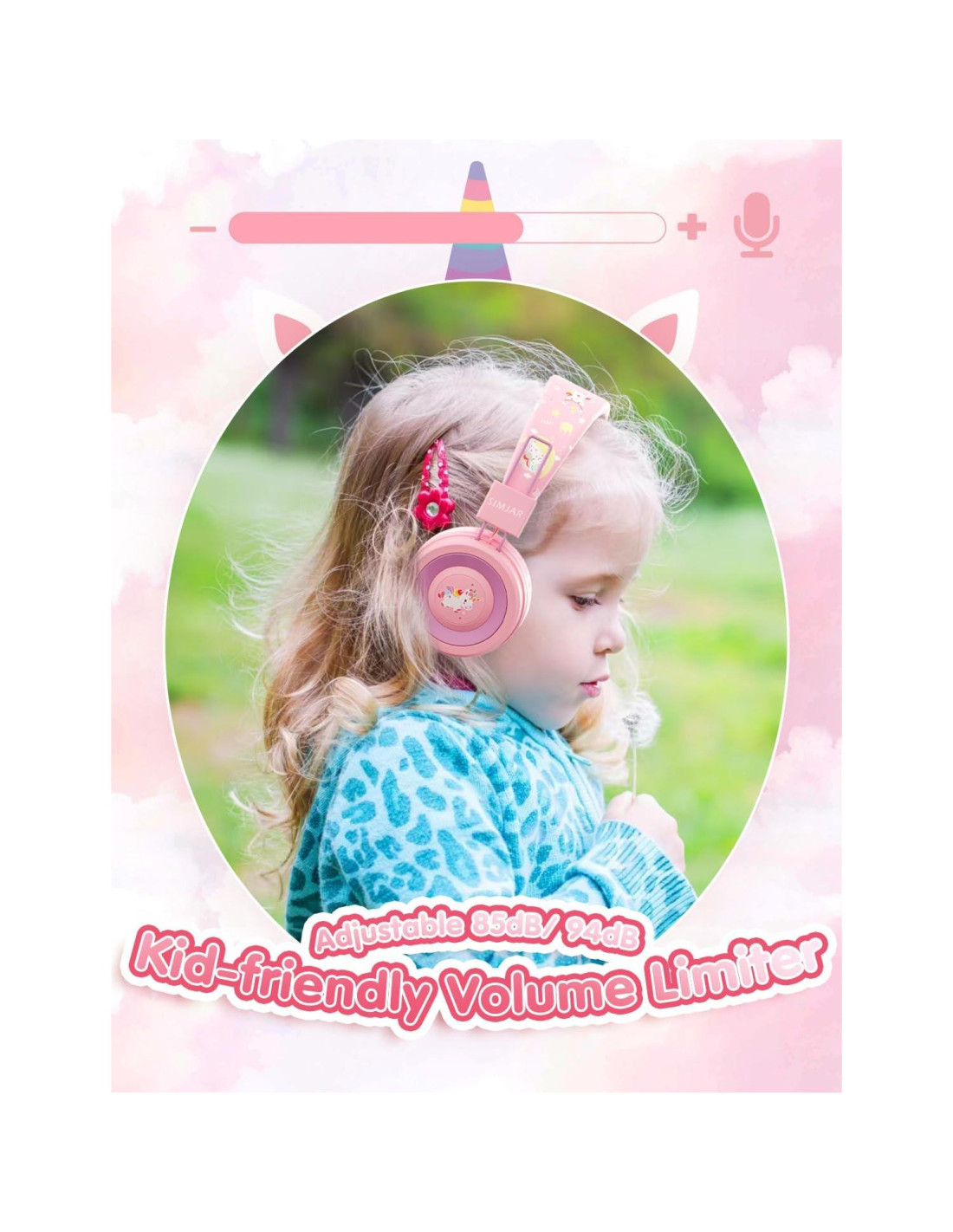 - Se incluye un regalo extra: se incluye una banda de goma de unicornio rosa, que combina con la imagen del unicornio en los auriculares