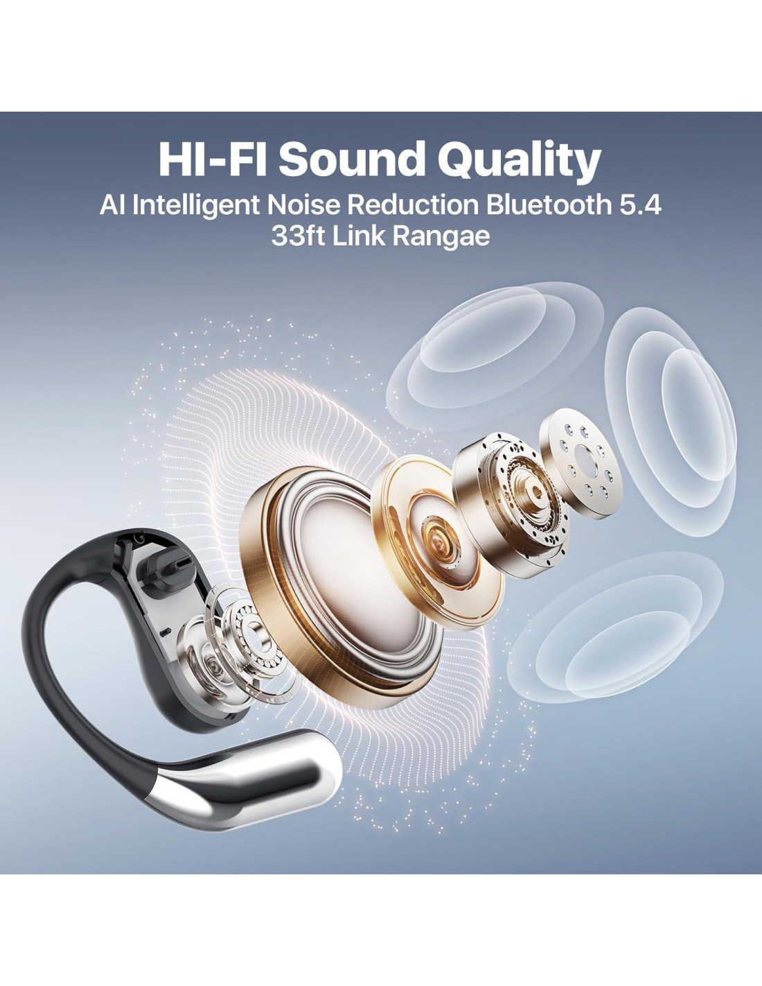 - Diseño Ergonómico de Colgante para la Oreja: El diseño de colgante para la oreja minimiza la presión durante largos períodos de uso, ofreciendo una experiencia cómoda incluso durante un uso prolongado. Apariencia Elegante: El diseño elegante y moderno, junto con el elegante estuche de carga, no solo protege los auriculares, sino que también asegura una experiencia de usuario portátil, conveniente y a la moda.