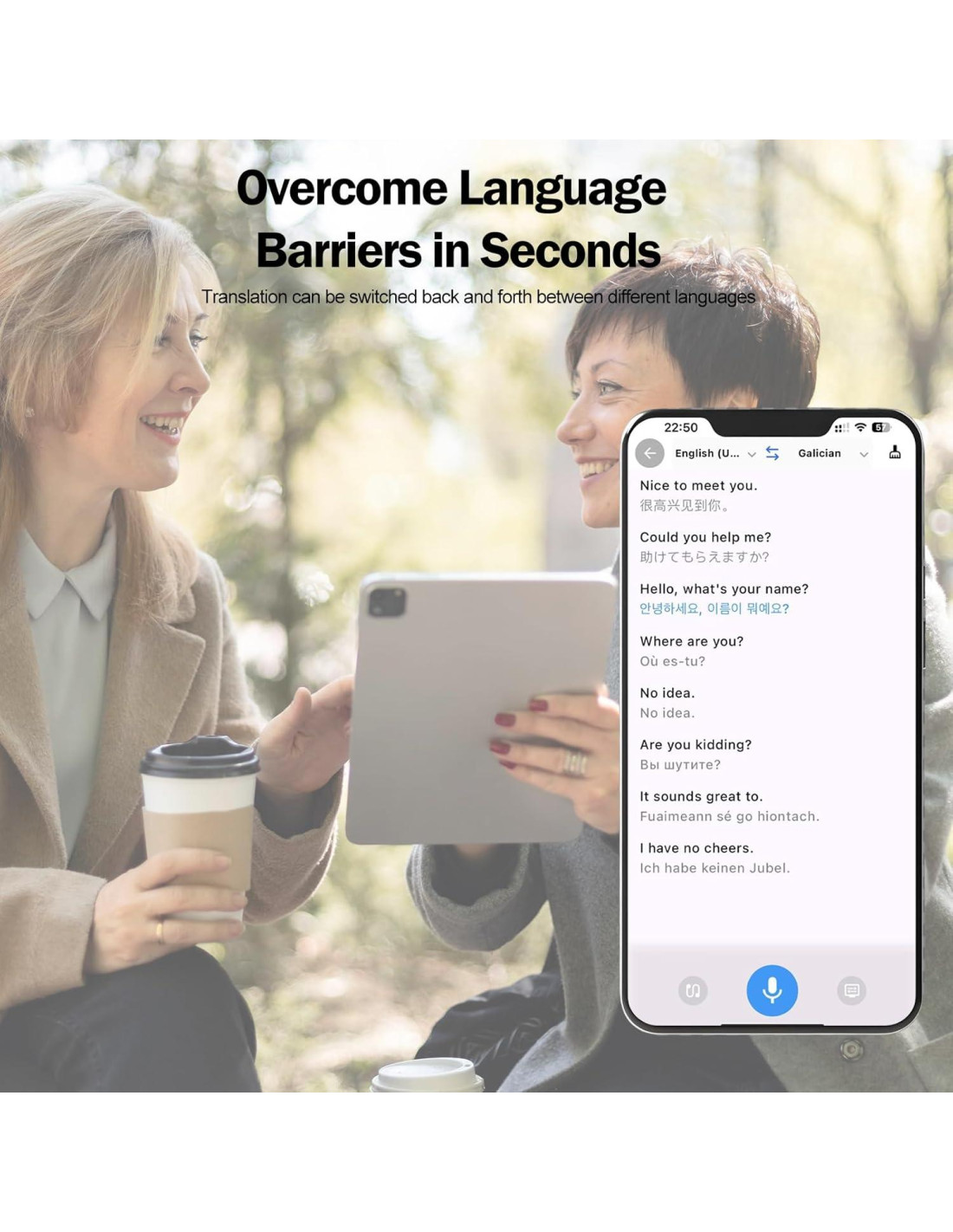 - [Traducción en Tiempo Real en 144 Idiomas] Comunica sin esfuerzo a través del mundo con traducción de voz instantánea en 144 idiomas y dialectos. Ya sea que estés viajando al extranjero, asistiendo a una reunión de negocios internacional o aprendiendo un nuevo idioma, estos auriculares de traducción te ayudan a entender y ser entendido, sin necesidad de un traductor o cambiar de aplicación. Impulsados por algoritmos de IA inteligentes para resultados rápidos y precisos.