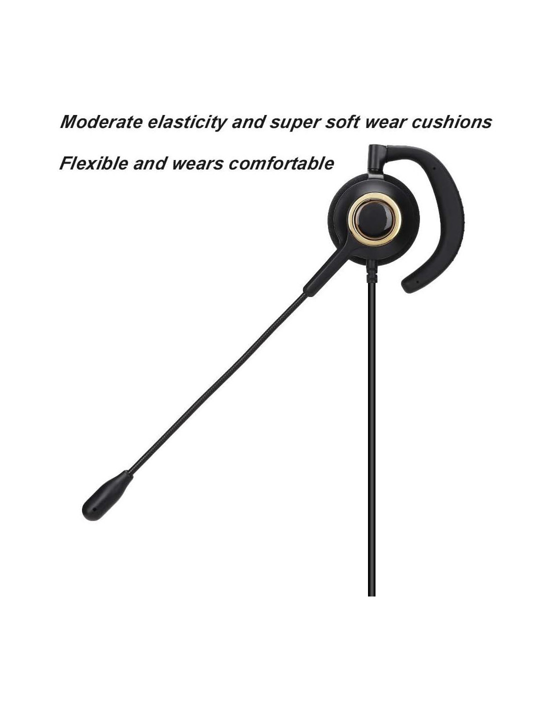 - [FÁCIL DE USAR]: Es moderno y conveniente. Puedes usarlo de tres maneras: montado en la parte trasera, gancho para la oreja, montado en la cabeza. y el micrófono puede girar libremente. Compatible con la mayoría de los teléfonos de call center.