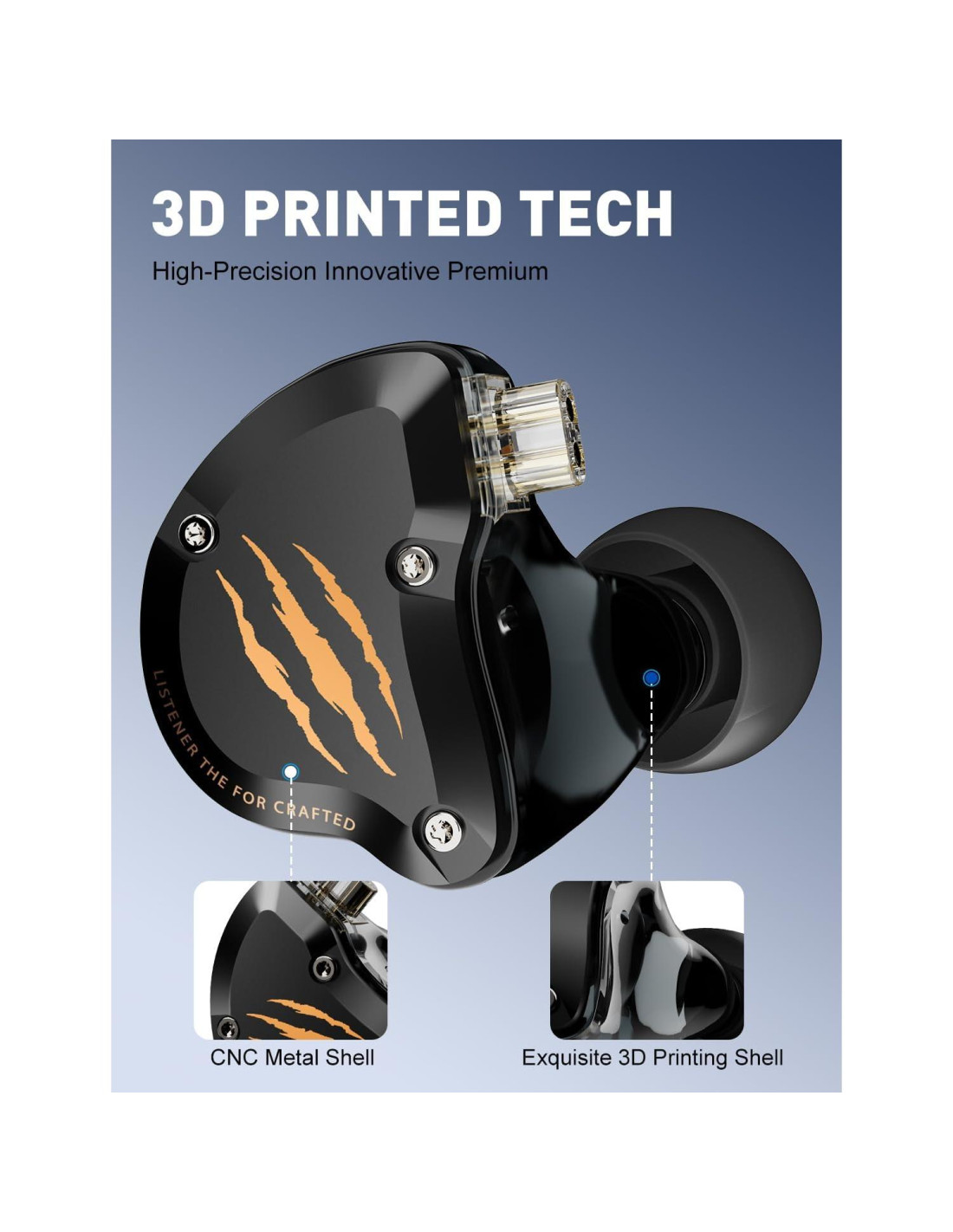 - Diseñado para la Claridad: Una carcasa de metal mecanizada por CNC asegura calidad premium y cavidades impresas en 3D DLP mejoran la precisión del sonido para desplazamientos diarios, música, juegos o streaming