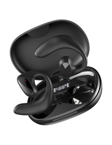 - Uso Cómodo y Diseño Elegante: El diseño ergonómico que cuelga de la oreja asegura comodidad incluso durante largos períodos de uso sin causar presión. Apariencia elegante, junto con un estuche de carga elegante que dura 30 horas, no solo protege los auriculares, sino que también proporciona una experiencia de usuario moderna, conveniente y portátil.