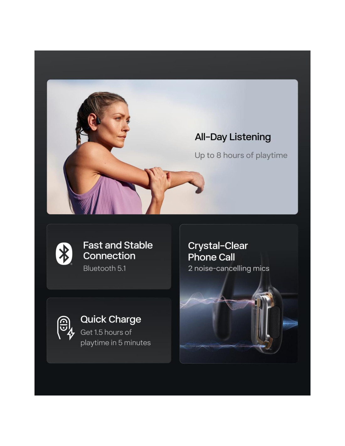 - 10 Horas de Tiempo de Reproducción y Carga Rápida: Disfruta de una experiencia ininterrumpida de 10 horas de música, llamadas y podcasts con OpenRun Pro. Una carga rápida de 5 minutos añade 1.5 horas de vida de batería para un disfrute ininterrumpido. Ideal para correr, andar en bicicleta, trabajo remoto, juegos y ejercicios.