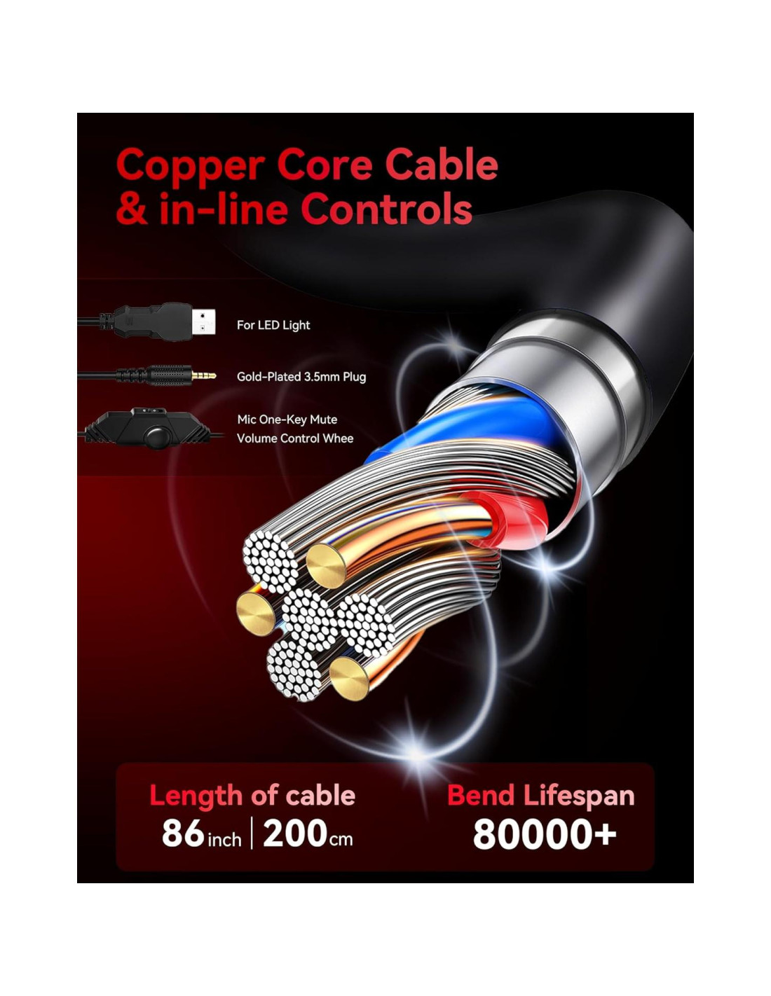 - Característica del cable: Puerto USB para Luz RGB; Adaptador Divisor de Audio/Micrófono para Hablar y Escuchar