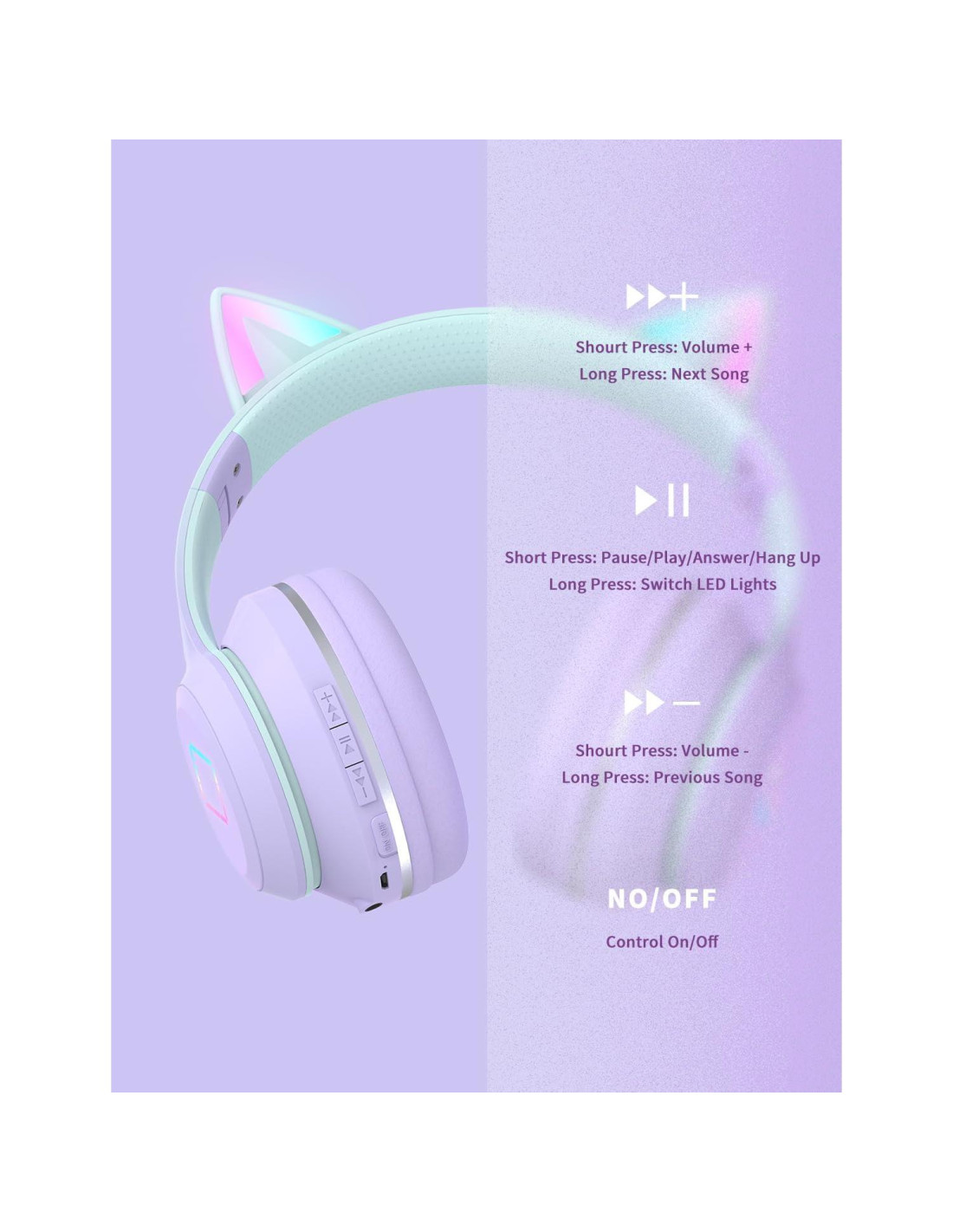 - [Lindos y Dulces Orejas de Gato] Estos auriculares bluetooth sobre la oreja con orejas de gato están diseñados para niños que aman los gatos, además de un par de orejas de gato que pueden parpadear (mantén presionado para apagar el LED), todo hace que nuestros auriculares para niños sean vivos e interesantes. Idea de regalo perfecta para niños, tanto niños como niñas, incluso para niños pequeños de 2 años en adelante para sus cumpleaños, Navidad y regalos de regreso a clases.