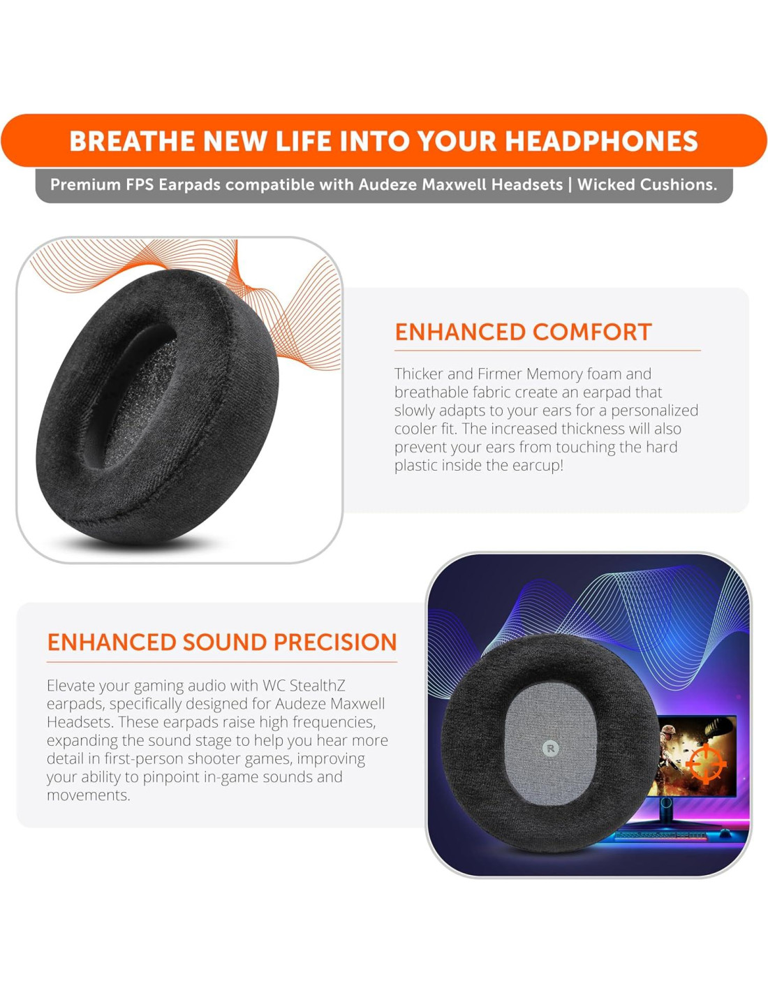 Mejora tu auricular con WC StealthZ Maxwell, hecho exclusivamente para Audeze Maxwell para Xbox y Audeze Maxwell para PS5. Estas almohadillas ofrecen un ajuste preciso, sonido superior ajustado a FPS y comodidad duradera, ayudándote a mantenerte competitivo en cada ronda.