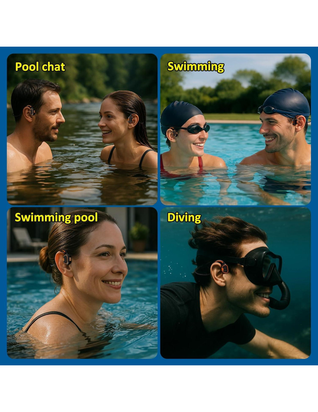 - [IP68 Impermeable Profesional] - Auriculares de Conducción Ósea para Natación, diseñados para nadar y deportes extremos. Soporta inmersión completa y uso prolongado en agua.