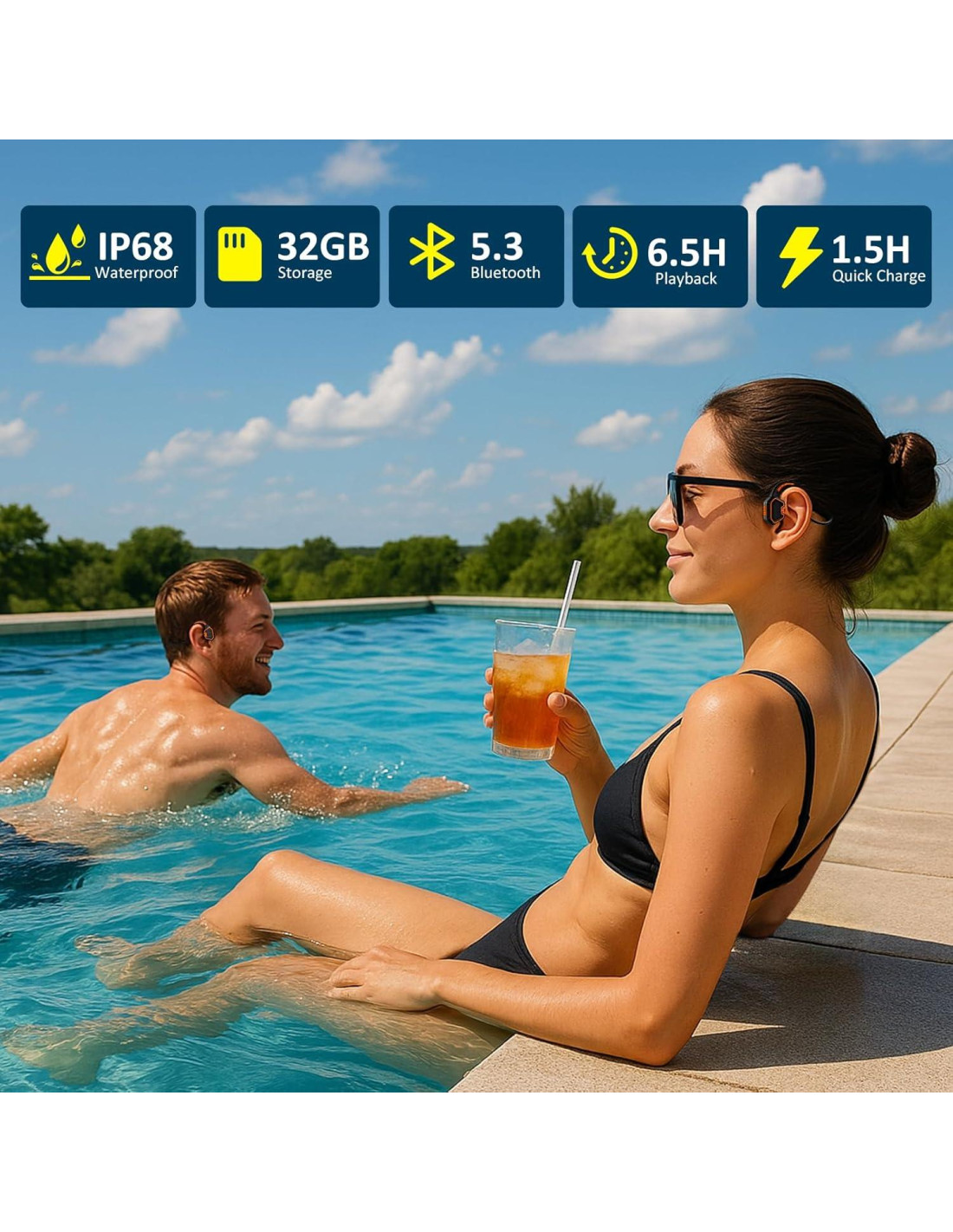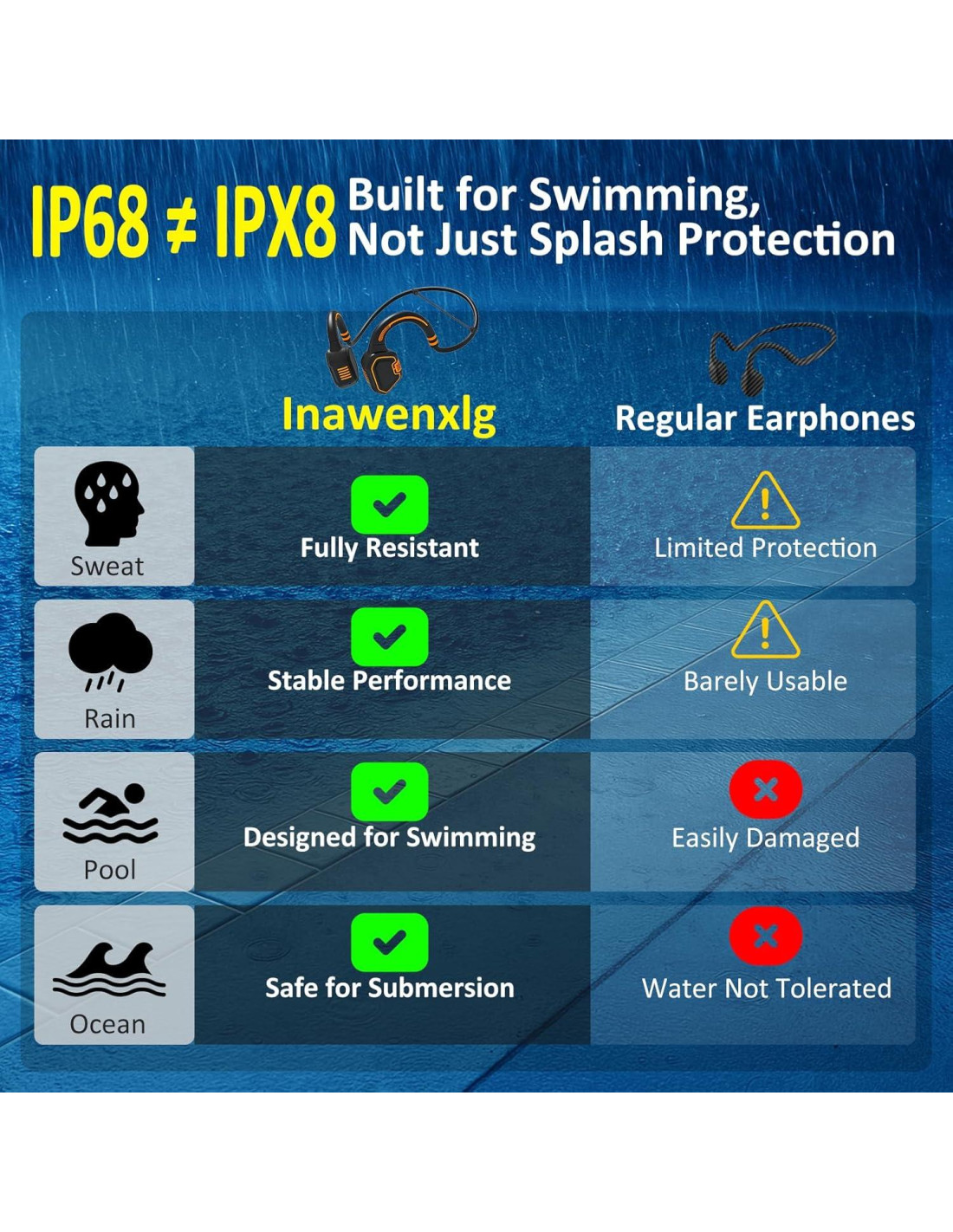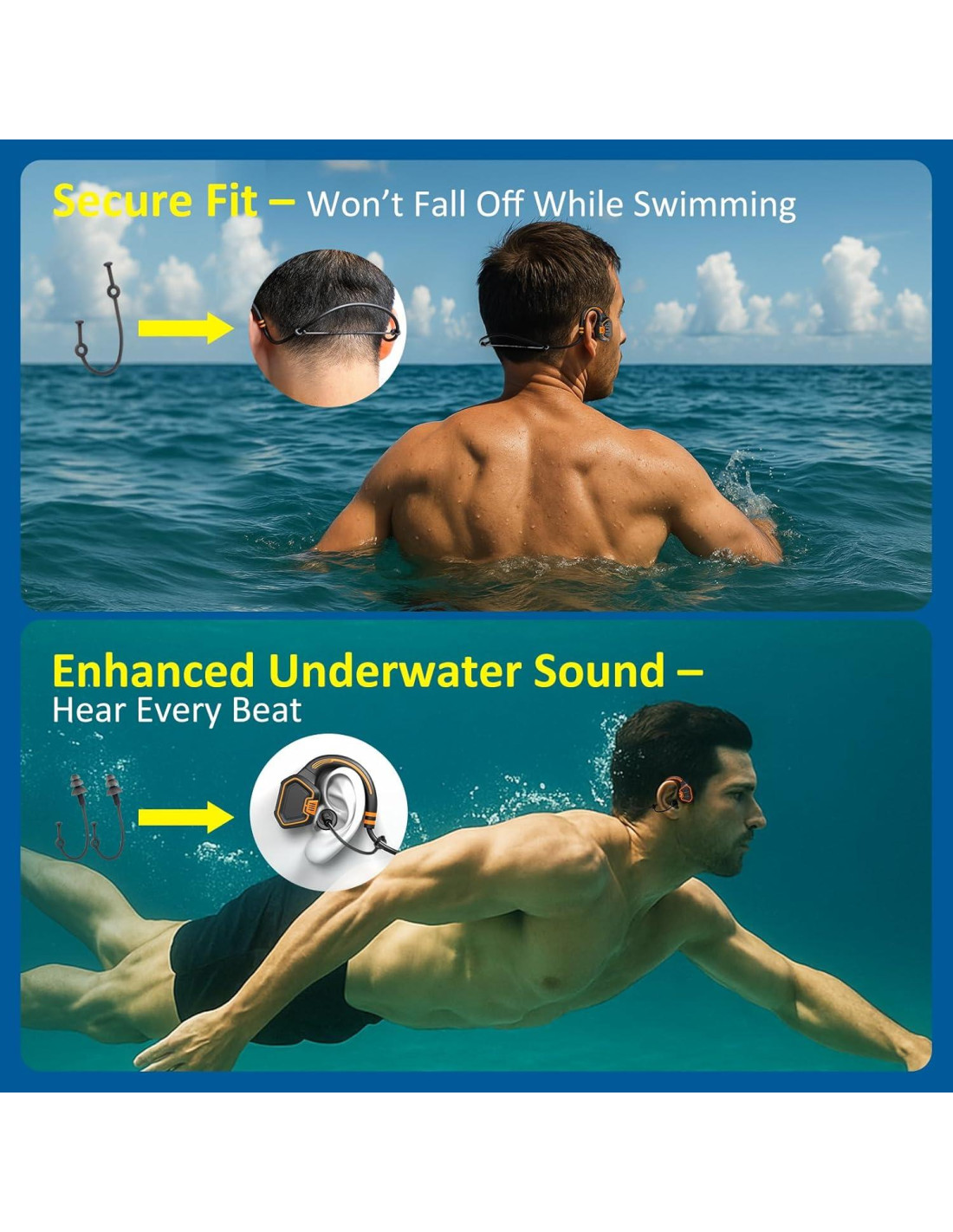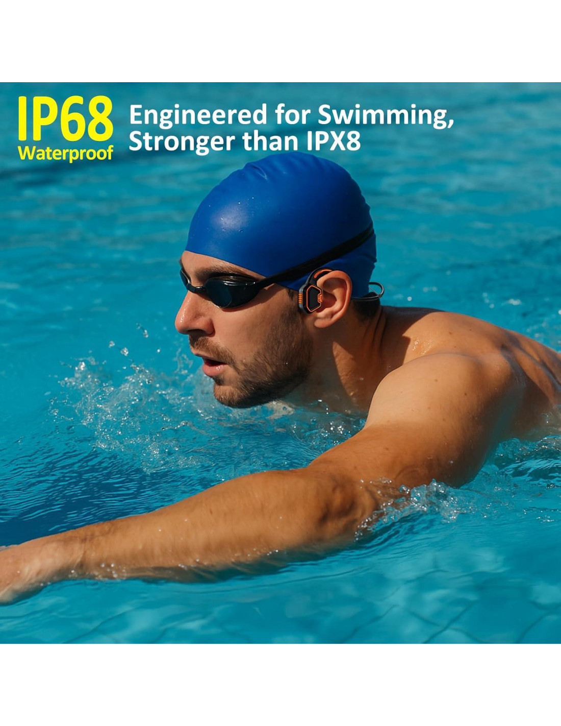 - [IP68 Impermeable Profesional] - Auriculares de Conducción Ósea para Natación, diseñados para nadar y deportes extremos. Soporta inmersión completa y uso prolongado en agua.