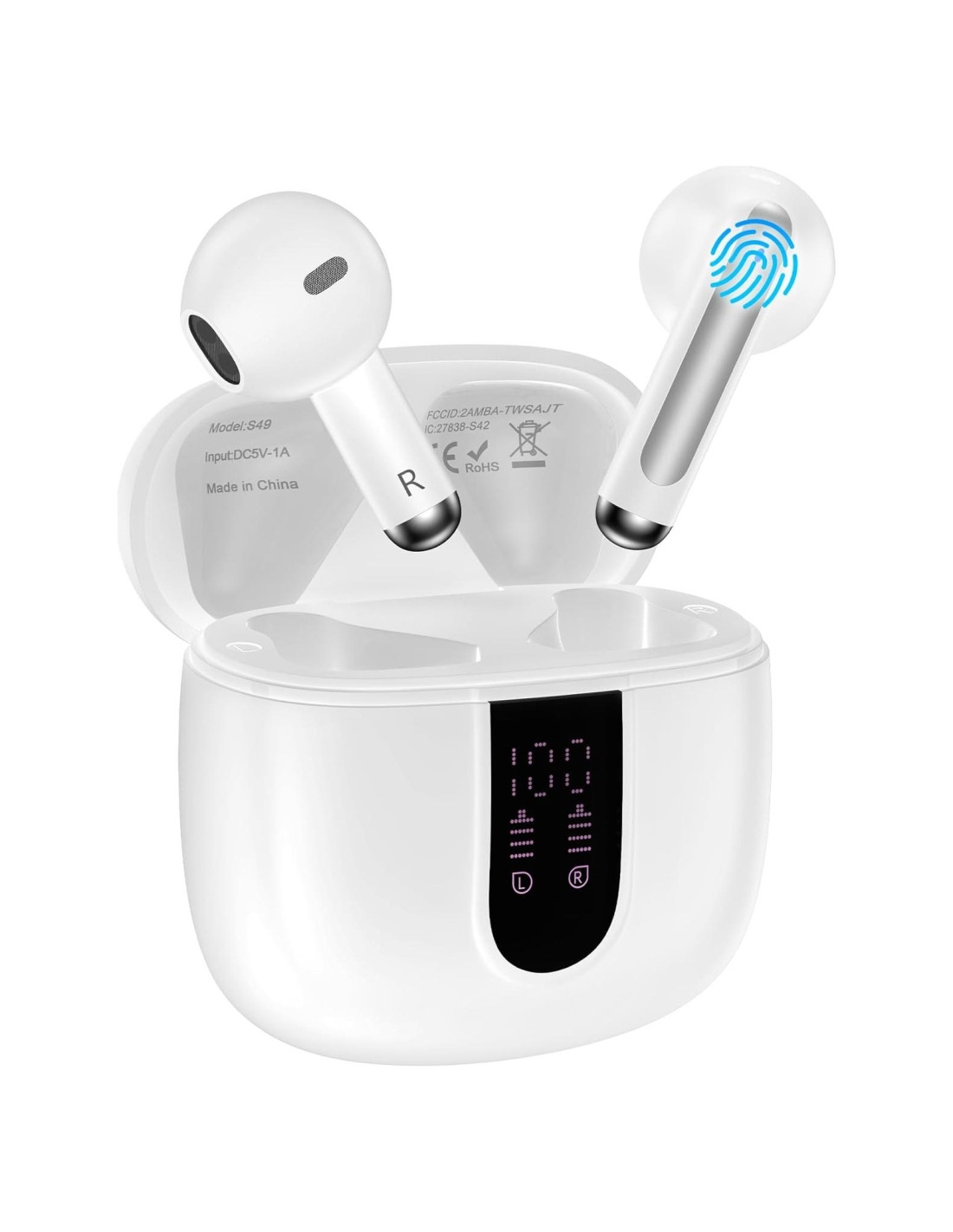- 5. Auriculares con Toque Inteligente y Llamadas Claras - El control táctil con un toque te permite reproducir/pausar, cambiar pistas, ajustar el volumen, responder llamadas o activar el asistente de voz fácilmente. La tecnología ENC reduce el ruido de fondo, manteniendo las llamadas claras incluso en entornos ruidosos.