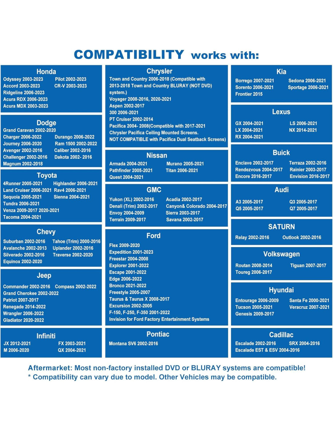 Los auriculares infrarrojos SIMOLIO para DVD de coche permiten a los pasajeros en el asiento trasero disfrutar de una excelente claridad de sonido de películas, videos y música sin molestar a otros pasajeros y conductores. ¡Es el mejor compañero para los viajes familiares en coche! Algunas compatibilidades de vehículos populares son las siguientes: Honda Odyssey 2003-2023. Honda Pilot 2002-2023. Dodge Grand Caravan con sistema uConnect VES 2002-2020. Dodge Durango 2006-2022. Chrysler Town & Country 2006-2018 (Compatible con el sistema BLURAY de Town and Country 2013-2018 (NO DVD)). Chrysler Pacifica 2004-2008 (Compatible con las pantallas montadas en el techo de Chrysler Pacifica 2017-2021. NO COMPATIBLE con las pantallas de respaldo dual de Pacifica). Chevy Tahoe (Trim) 2000-2016. Chevy Suburban 2002-2016. GMC Yukon 2002-2016. Toyota Sienna 2004-2021. Cadillac Escalade 2002-2016. Nissan Armada 2004-2021. Infiniti QX 2004-2021. Ford Expedition 2001-2023. Verifique su vehículo consultando la tabla de compatibilidad anterior. Los auriculares Bluetooth para niños SIMOLIO cuentan con personajes innovadores para una experiencia de escucha pura y natural como sigue: Cuidando la audición de los niños con 3 niveles de limitación de volumen - 75dB para niños pequeños, 85dB para niños, 94dB para adultos. Esta función es efectiva tanto en uso con cable como inalámbrico. El diseño sobre la oreja cumple la función de reducción pasiva de ruido, que bloquea el ruido exterior y mejora enormemente la eficiencia de escucha. Haga que sus hijos se concentren en aprender y escuchar. Auriculares infantiles anti-violencia, resistentes y duraderos para soportar las exigencias de manos inquietas. Usando una ingeniería ingeniosa para asegurarse de que las almohadillas no se caigan. Compactos y se pliegan muy pequeños. Fáciles de almacenar en el lindo estuche de EVA (incluido), el compañero perfecto para viajar o regresar a la escuela.