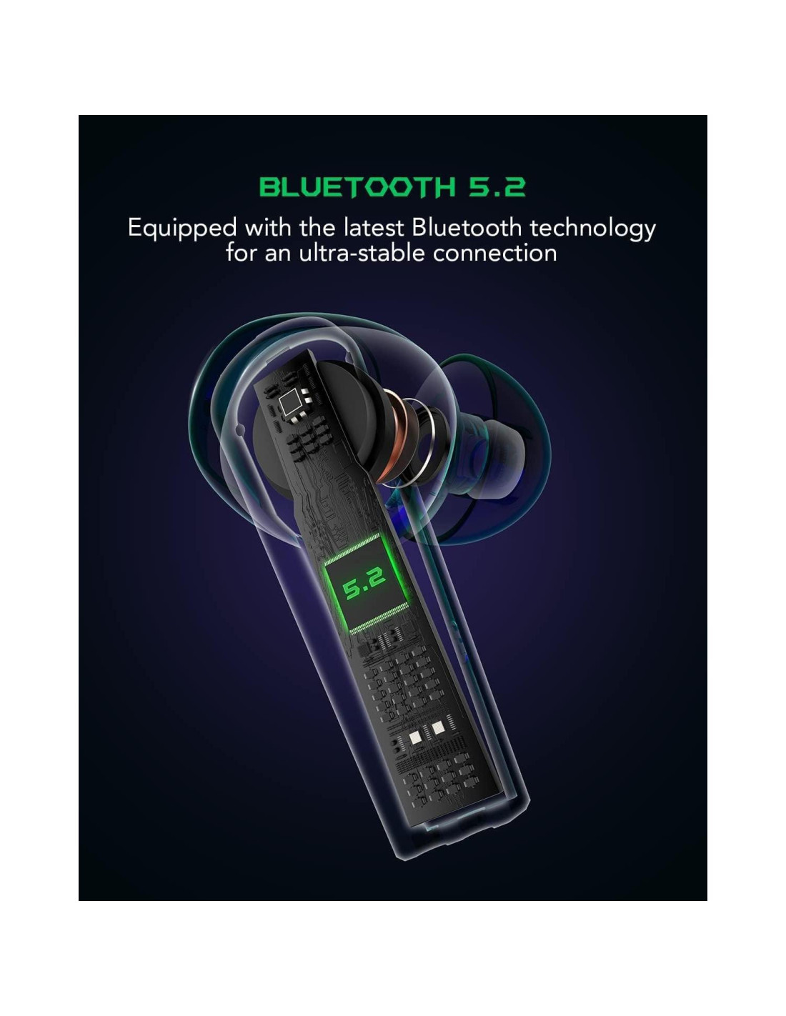- 4 Micrófonos Ultra-claros: 2 micrófonos ultra-claros integrados en cada auricular para capturar tu voz con precisión, facilitando la comunicación de voz en equipo y las llamadas telefónicas como si estuvieras hablando cara a cara, permitiéndote usar un solo auricular o ambos juntos para hablar libremente.