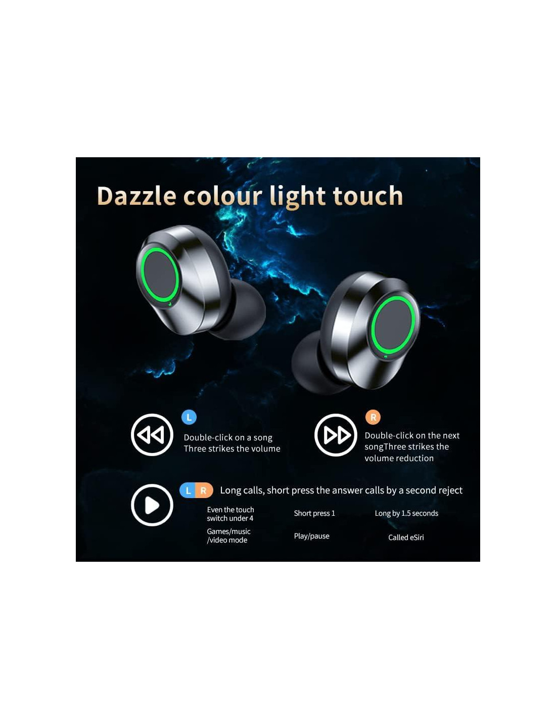 Pantalla LED Digital Profesional de Estilo Moderno Auriculares Inalámbricos V5.3 Bluetooth Compatibles con Jabra Talk 55 Precisión LED de Bajo Consumo Caja de Carga/Almacenamiento Iluminada para vida extendida. Ajuste universal con 3 tamaños diferentes de puntas (S,M,L), Manual del Usuario y Cable USB-C. CARACTERÍSTICAS: Bluetooth 5.3 Más Cancelación de Ruido Cuádruple Micrófonos (2 micrófonos por auricular) tiene la tecnología más nueva CVC 8.1 que reduce el ruido hasta 30 dB. Batería de Alta Capacidad de 2,000mah Retención por hasta 25+ Horas de Capacidad Total de Reproducción! Ambos Auriculares transmiten más de 5+ horas con 20+ horas adicionales de carga a través de la caja, total de 25 horas! Diseño de Separación Inaural Completo, lo que significa que nuestros auriculares Bluetooth 5.3 pueden cambiar entre operación simple o dual libremente El sonido es claro, puedes disfrutar de la música cómodamente con música a 120Hz y Llamadas Telefónicas a 150Hz Recubrimiento nano impermeable IPX3 previene efectivamente que el agua y el sudor penetren. Ideal para correr, yoga, gimnasio, fitness, etc. Nota: La caja de carga NO es impermeable. Pantalla LED Digital Completa Inteligente hace que esto sea más intuitivo y elegante, tamaño más pequeño, más fácil de llevar, portátil y con funciones más completas. Compatible con muchos otros teléfonos inteligentes y dispositivos. INSTRUCCIONES: Retira la caja de los auriculares, se encenderán automáticamente, la luz azul lo confirmará. Si no, presiona los auriculares durante 3-5 segundos, la luz indicadora azul parpadea, ahora están encendidos. En tu dispositivo, activa Bluetooth, busca "YD03". Empareja y conecta, la voz de los auriculares indicará "Conectado".