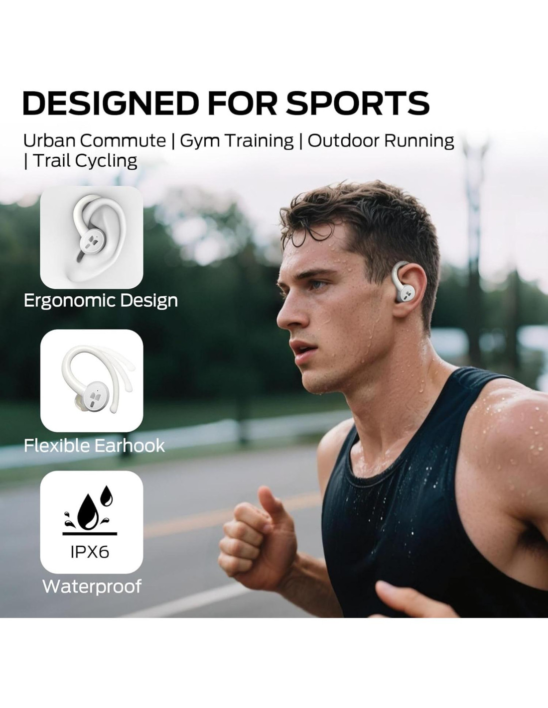 - [Ganchos para las Orejas Deportivos Cómodos, Impermeable IP-X5] - Los auriculares inalámbricos adoptan un diseño ergonómico de gancho para la oreja, proporcionando una experiencia de uso estable, siempre manteniéndose cómodos. El gancho para las orejas está hecho de material de silicona suave, se ajusta sin deslizamiento a la oreja, permitiéndote disfrutar de un festín auditivo sin estrés durante el uso prolongado. Los auriculares inalámbricos están equipados con tecnología impermeable IPX5, que puede prevenir eficazmente daños por salpicaduras causadas por sudor y gotas de lluvia, especialmente para ejercicio, correr, gimnasio.