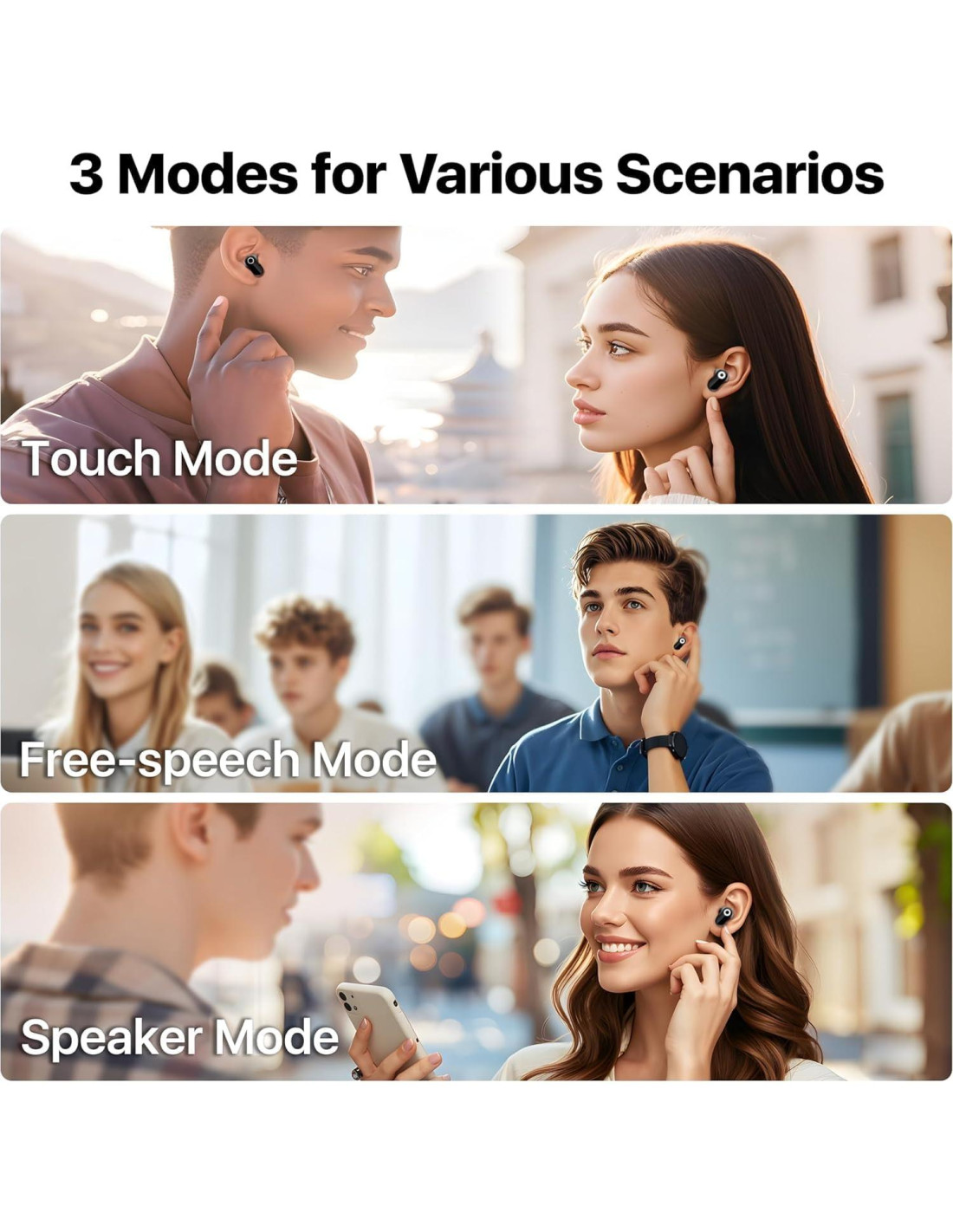 - Adaptable a Cualquier Escenario: Ya sea para reuniones, viajes o asistencia personal, los auriculares de traducción Bluetooth están diseñados para satisfacer tus necesidades. Cambia sin esfuerzo entre modos de traducción para mantenerte eficiente en cualquier situación.