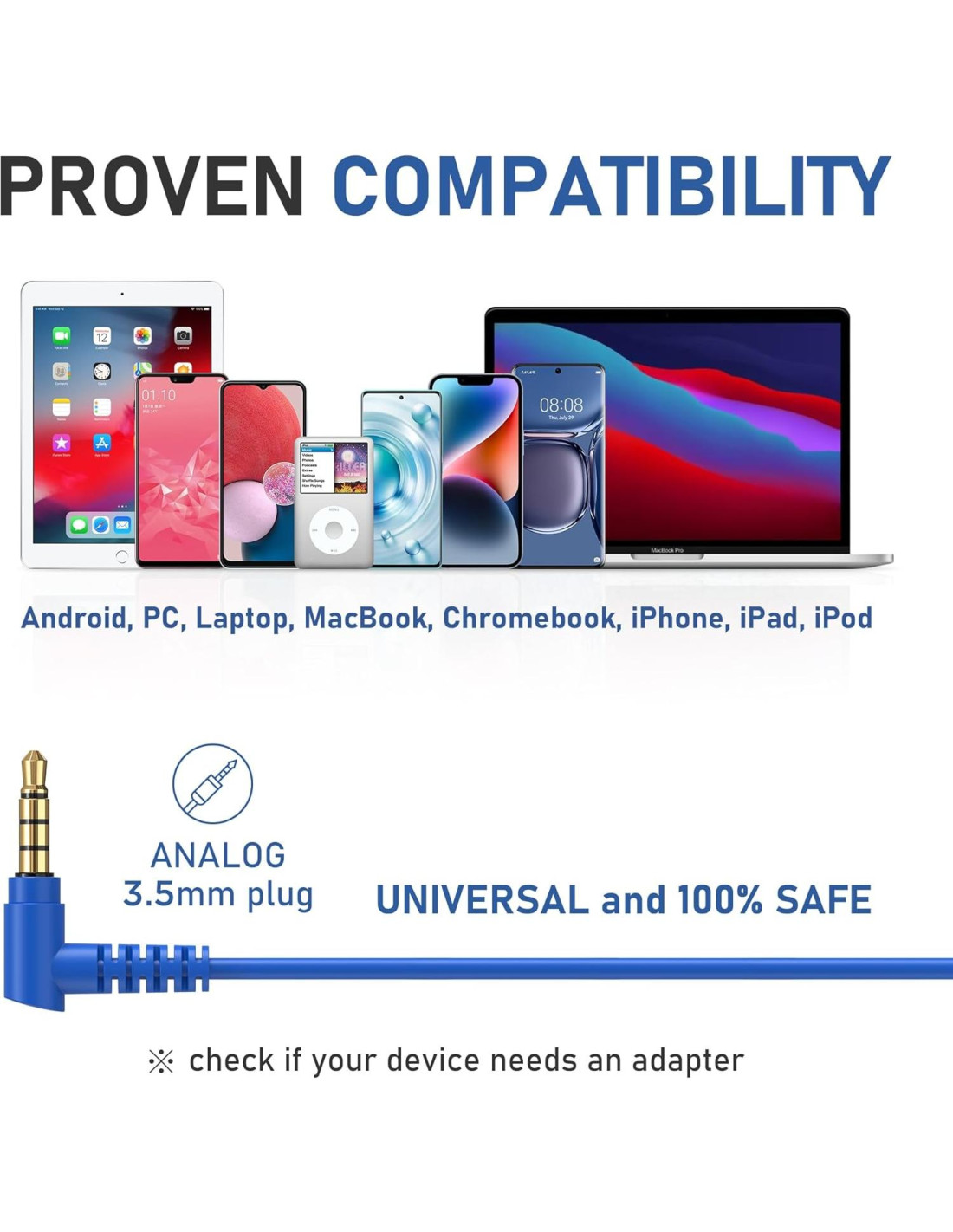 - Nuestros auriculares LUDOS ZENITH con cable son compatibles con la nueva generación de iPhones a través de adaptadores lightning (no incluidos), iPhone 5 y 6, iPad Mini/Air, Samsung S8/S9/S10, Galaxy M02s/F02s, M62/F62, A32/A52/A72, Note 8/9/10, iPod touch, y auriculares con cable de verdadero valor con un jack de 3.5 mm. El cable mide 4.2 pies (1.3 m) de largo