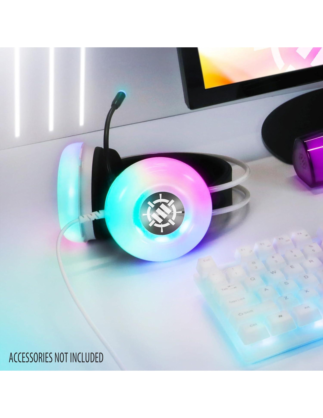 - LEDs ARCOÍRIS: El auricular para PC Theorem 3 tiene un diseño blanco claro mientras las luces fluyen sobre la superficie clara, haciendo que los LEDs de este auricular USB ofrezcan impresionantes efectos de arcoíris | No se pueden cambiar los LEDs