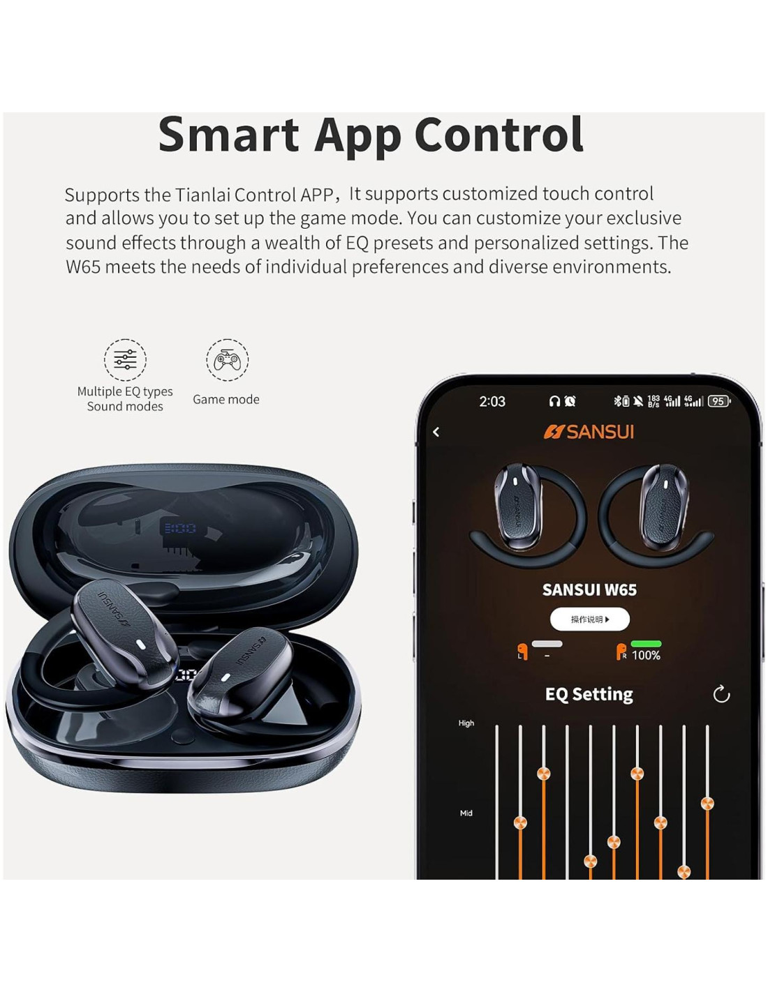 - [ Toca y disfruta ] Controles táctiles simples en los auriculares Sansui W65 con tu dedo, facilitan el cambio entre responder/colgar llamadas, con solo presionar, controla sin esfuerzo tu música y responde llamadas, brinda gran seguridad y conveniencia cuando estás conduciendo, haciendo ejercicio o corriendo.