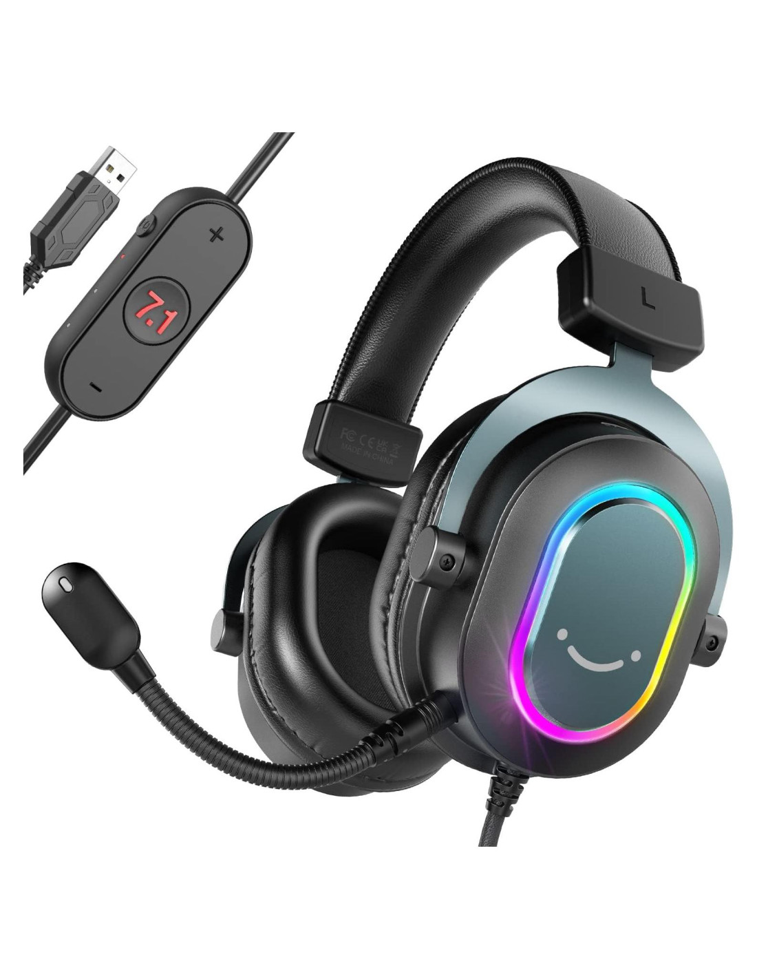 - [Auriculares RGB y Uso Amigable] Los auriculares gaming PS5 negros para PC, con sus brillantes características RGB, son la combinación perfecta para tu configuración de escritorio. Los auriculares RGB dan vida a tu imaginación LED RGB con luces vibrantes y brillantes en una atmósfera de juego. Un elemento atractivo para la grabación de video y configuraciones de transmisión en vivo es la iluminación modesta, que realmente hace que tus videos resalten. Este auricular USB con micrófono para PC es compatible con PC, PS4 y PS5, ¡la elección perfecta para jugadores en movimiento! El cable trenzado de estos auriculares está diseñado para durar, y su longitud es lo suficientemente larga como para alcanzar tu caja de PC debajo del escritorio, por lo que no estarás restringido por la distancia. ¡Prepárate para jugar!