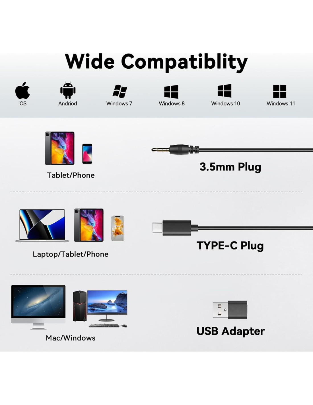 - [OPCIONES DE AURICULARES DE 3.5MM Y ENCHUFE USB]: Estos auriculares con cable y micrófono cuentan con un enchufe USB y un cable de audio de 3.5mm, diversas opciones para negocios, teléfonos móviles, iPads, iPhone, smartphones, tabletas, laptops, PS4, PS5, computadoras PC u otros dispositivos; Adecuado para la mayoría de los sistemas de PC y smartphones. El cable de longitud flexible ofrece libertad y opción ajustable al usar los auriculares.