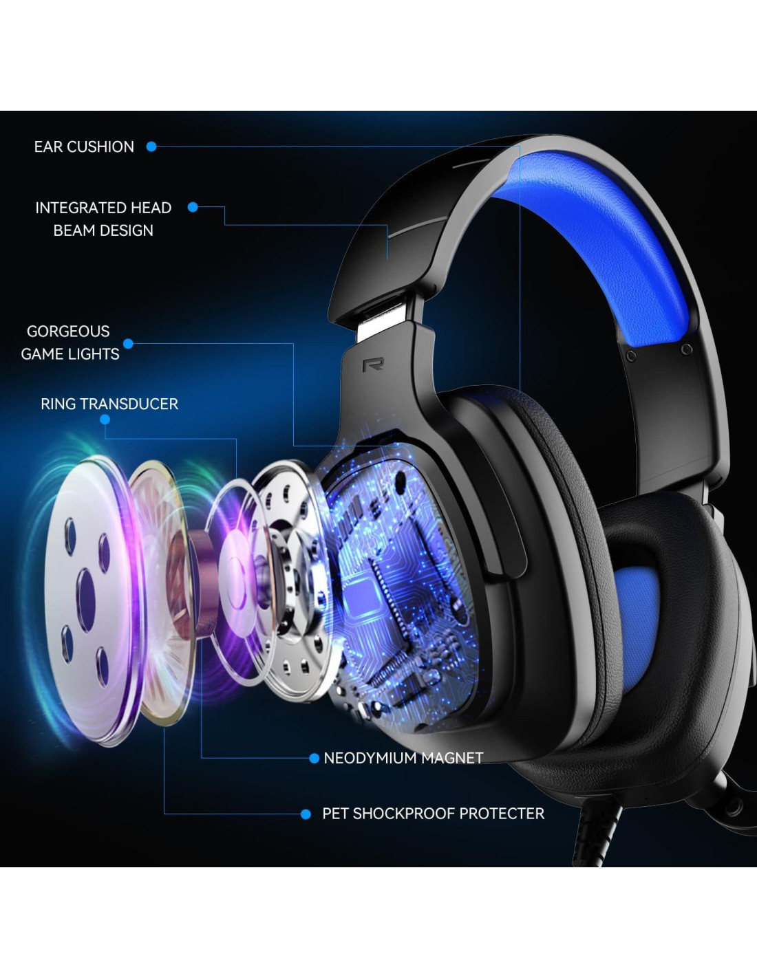- [Auriculares Gaming Excepcionales] Controladores de audio de neodimio de alta densidad de 50mm con sonido surround estéreo y graves profundos. El audio inmersivo te proporciona una ventaja distintiva en el juego y una experiencia fantástica al ver películas.