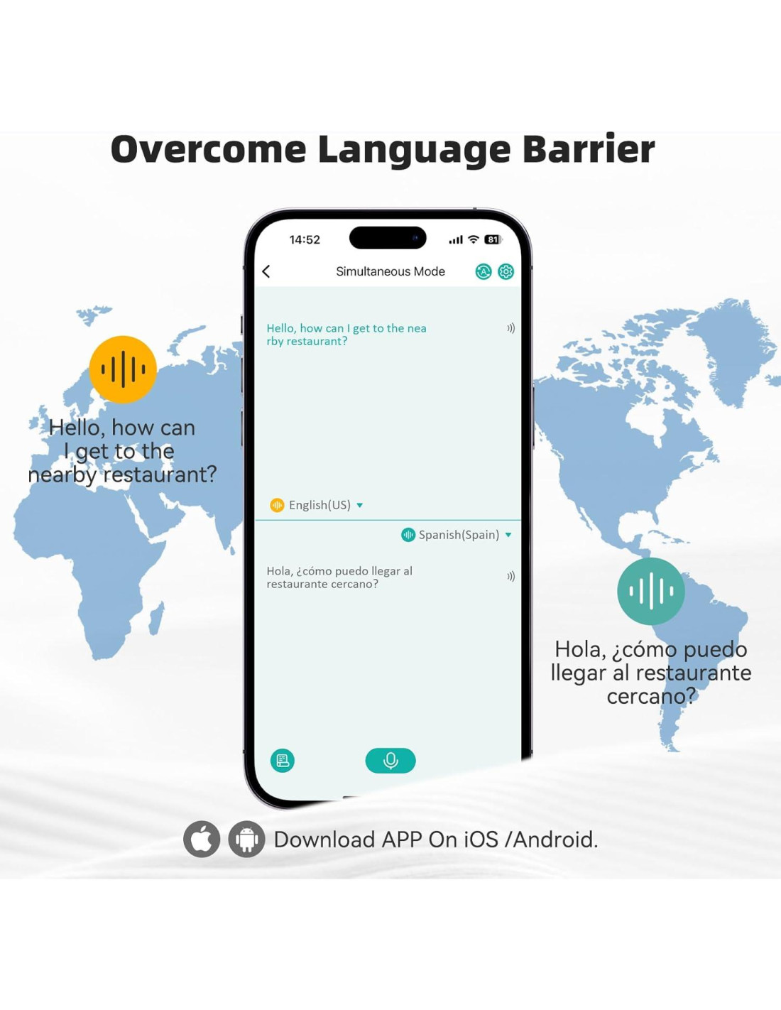 - CONFIGURACIÓN RÁPIDA Y FÁCIL: Los auriculares traductores en tiempo real se conectan simplemente a través de Bluetooth, configuran la aplicación para establecer los idiomas deseados y comienzan a traducir instantáneamente, haciendo que la comunicación sea sin esfuerzo dondequiera que vayas.