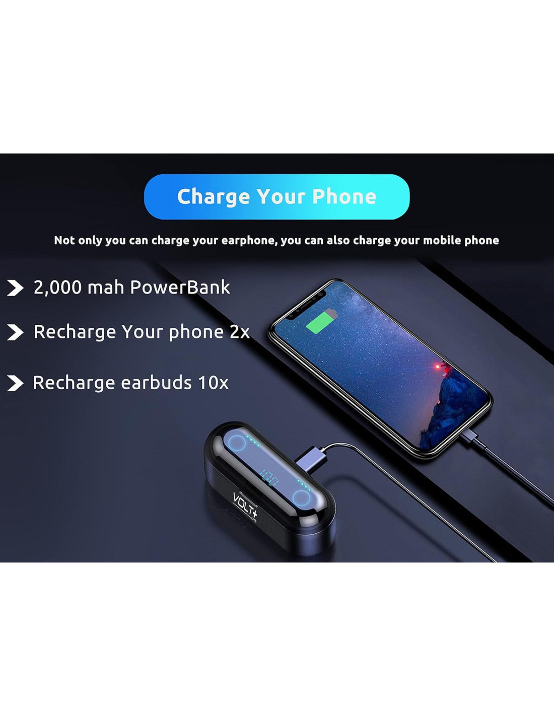 - [QUÉ OBTIENES] : Obtendrás una caja de alimentación habilitada de 2000Mah que recarga 24h-26 horas de vida para tus auriculares Bluetooth Volt Plus Tech Versión F9 TWS con una caja de regalo de almacenamiento Power Pack, y el auricular de banco de carga puede cargar durante más de 24 horas de uso.